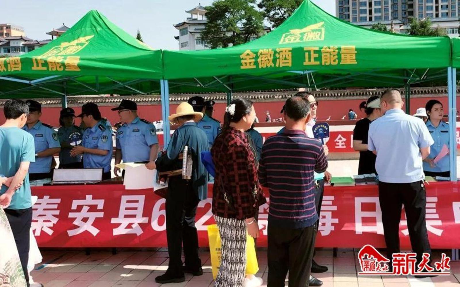 新天水讯【特约通讯员李晓兵】6月26日,秦安县禁毒办牵头,组织公安、卫健、法院、工会、文旅等22个成员单位及兴国镇在兴国镇文化广场开展6·26国际禁毒日集中宣传活动,各镇、社区及派出所在本辖区同步开展禁毒宣传活动,警民联手掀起了新一轮全民禁毒宣传热潮。