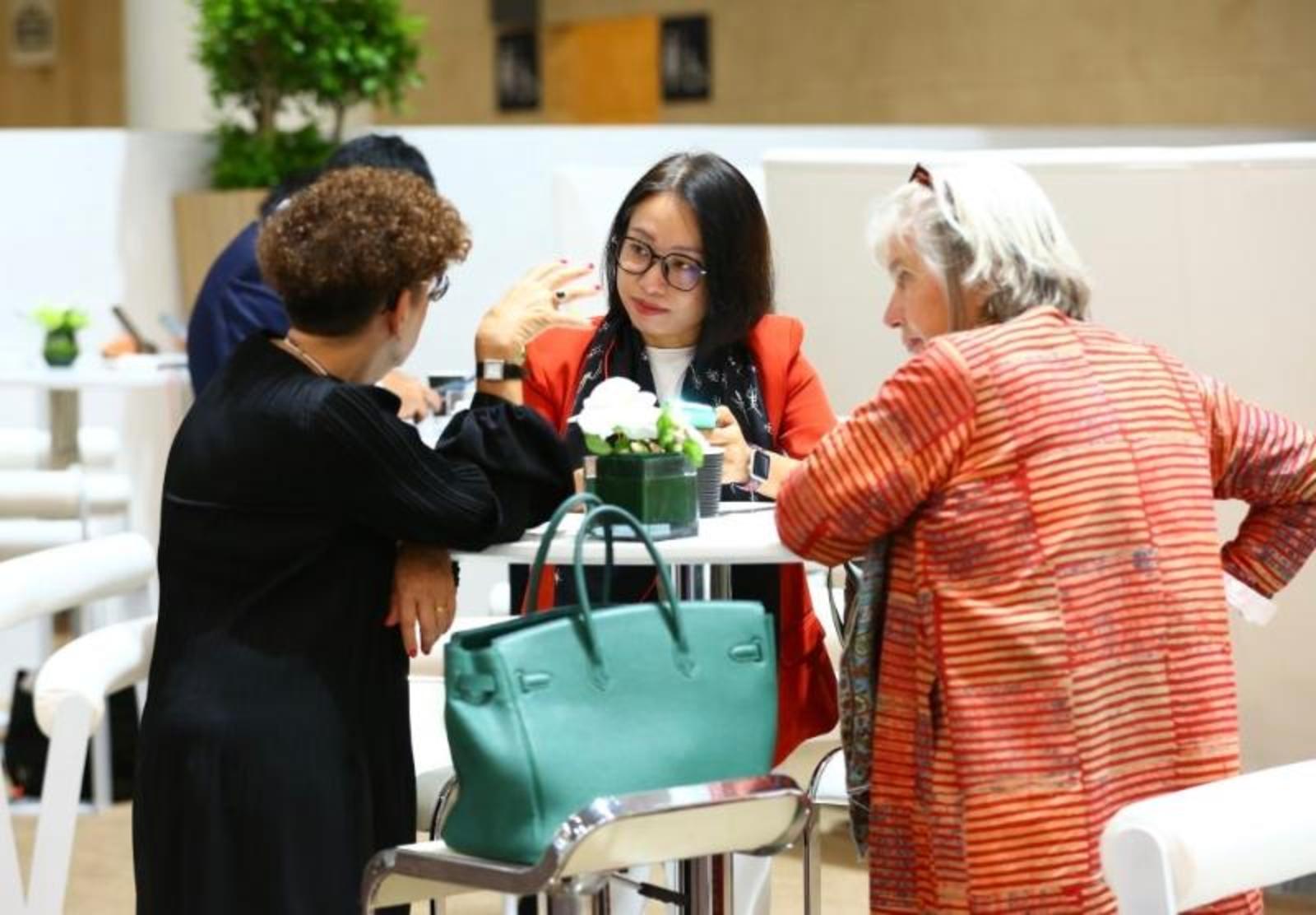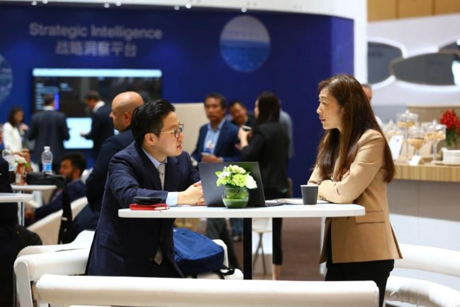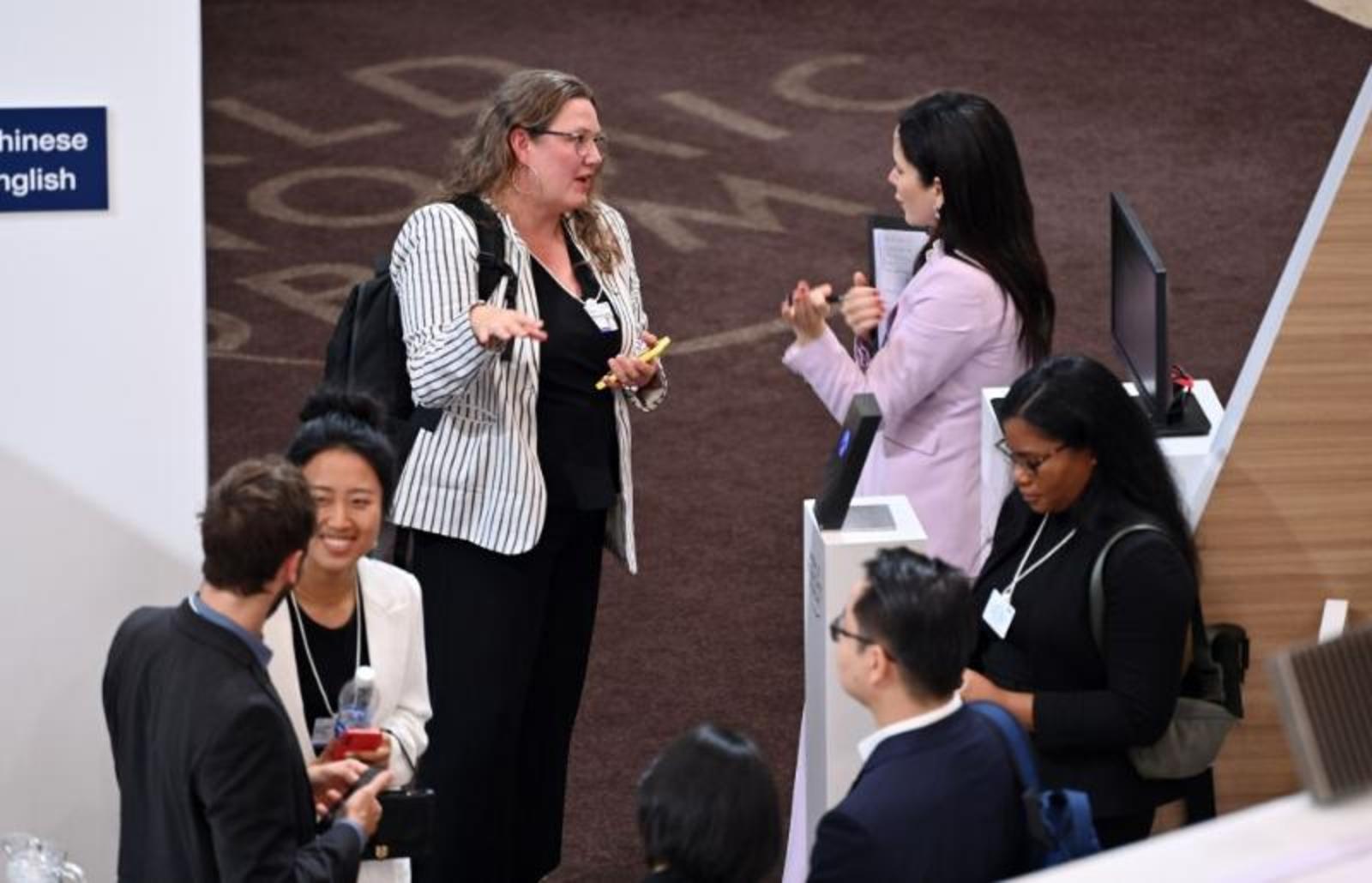 6月28日,与会者在天津梅江会展中心交流。新华社记者 孙凡越 摄