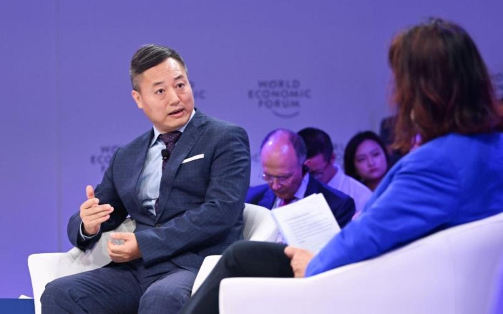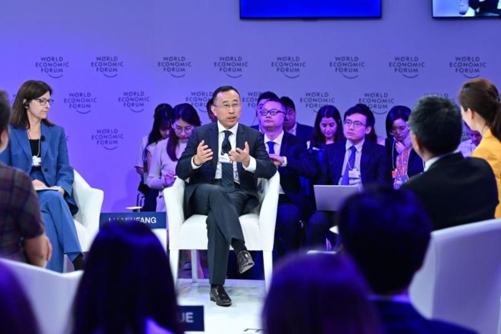 6月27日,蒙牛集团总裁卢敏放在论坛设置的“恢复自然的生存之争”对话环节发言。新华社记者李鑫摄