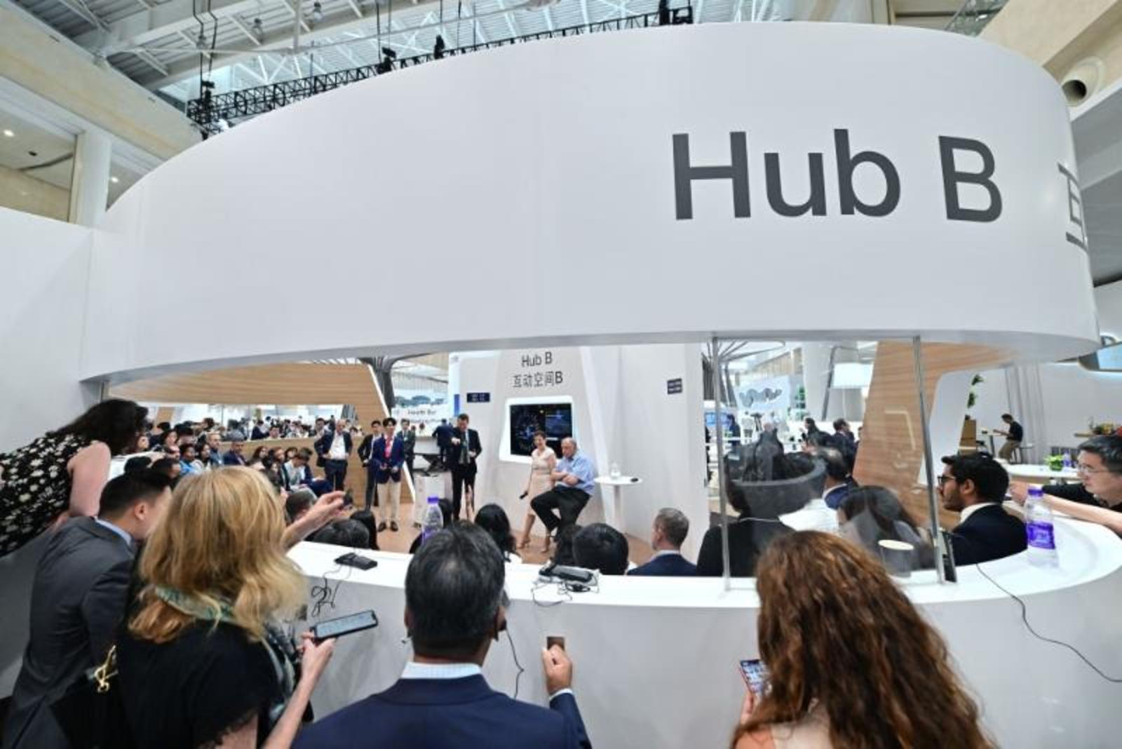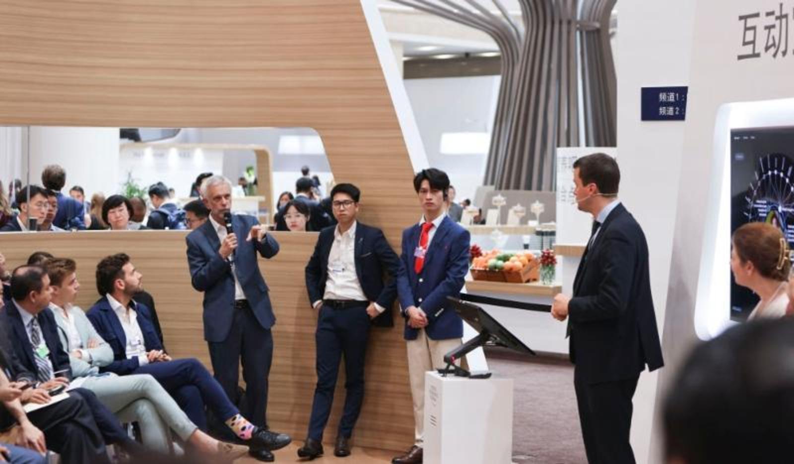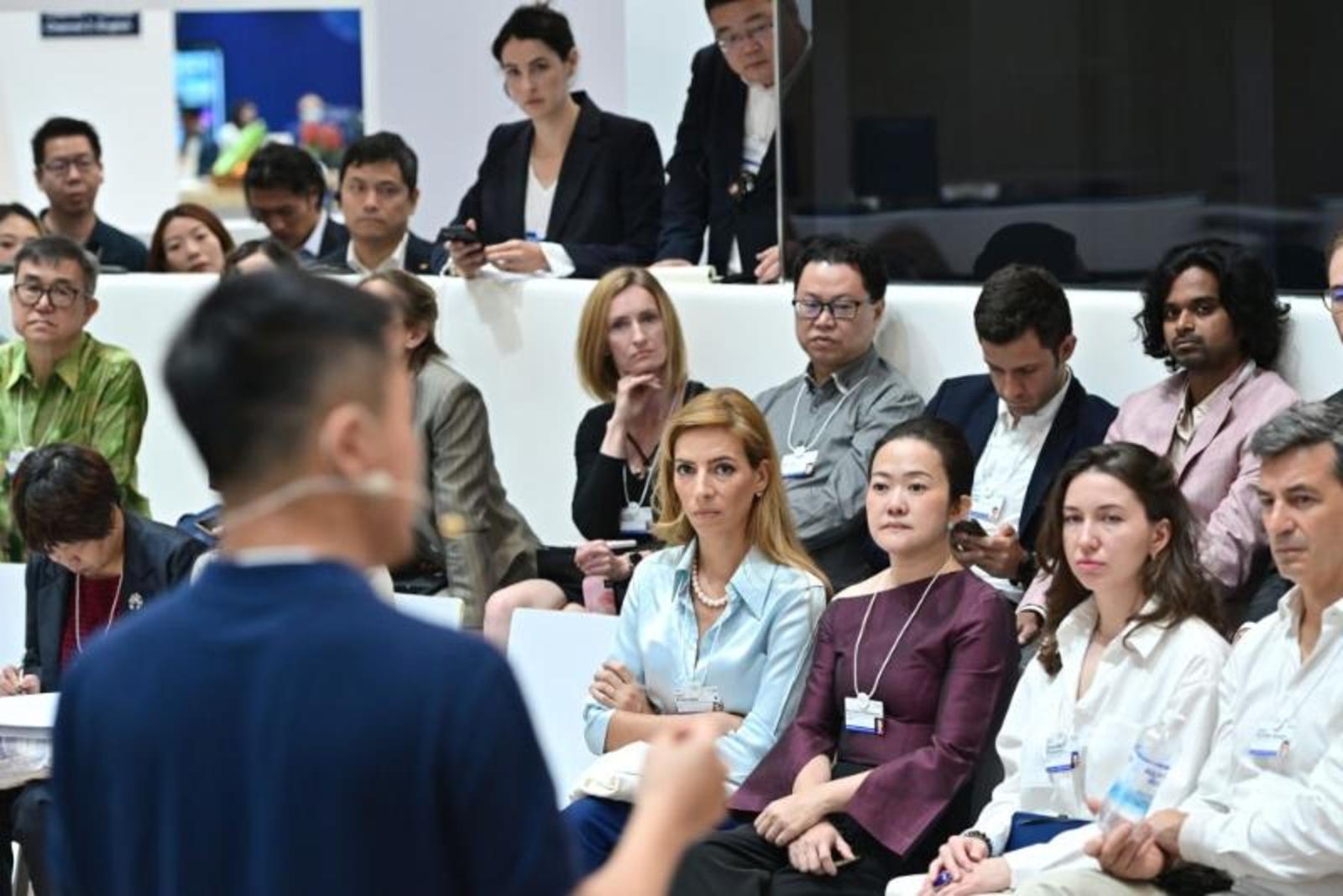 6月28日,与会者在论坛设置的新领军者村内围绕“氢能的应用和发展前景”议题展开对话。新华社记者赵子硕摄