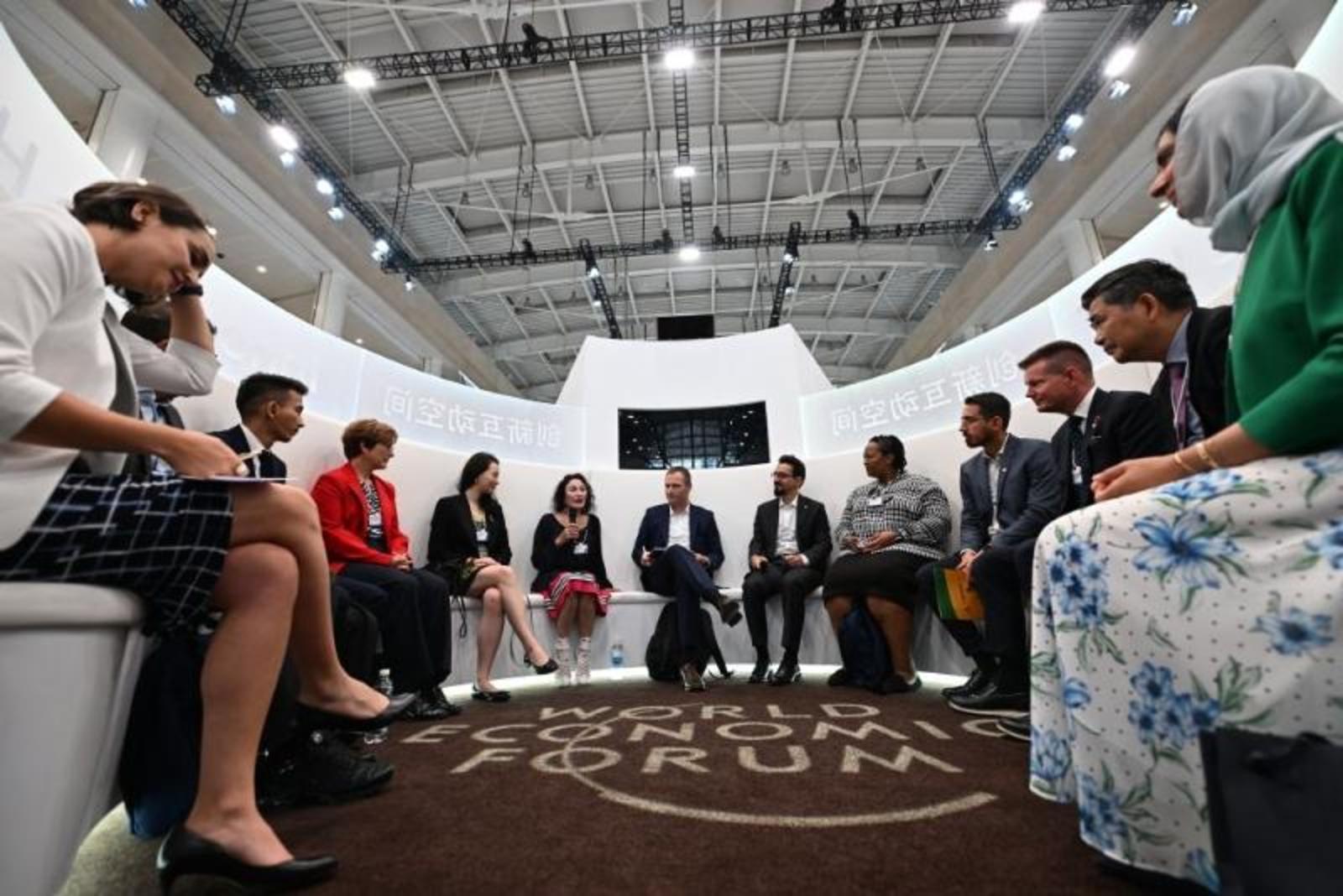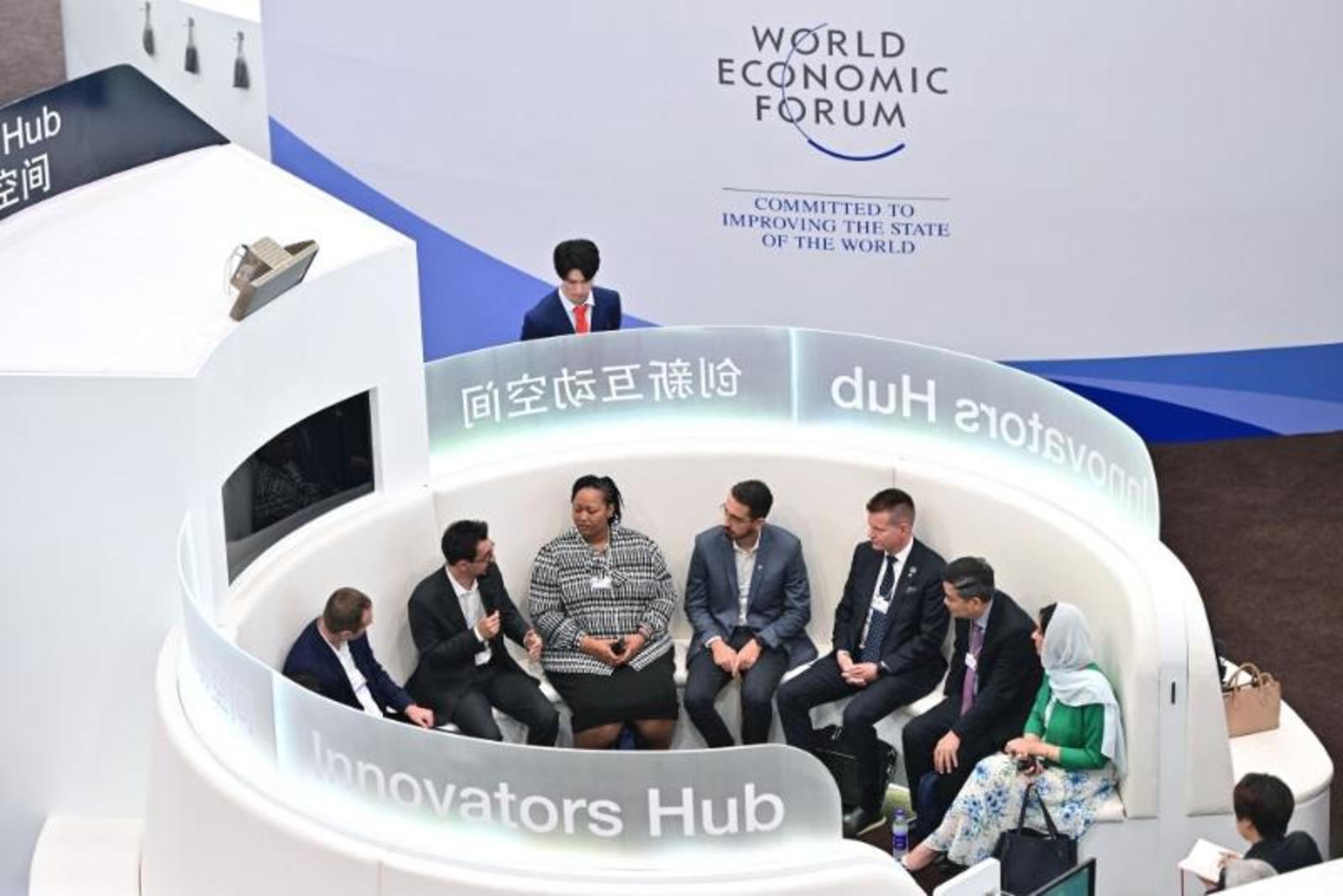 6月27日,与会者在论坛设置的新领军者村内围绕“前瞻扫描:颠覆式创新”议题展开对话。新华社记者 孟晨光 摄