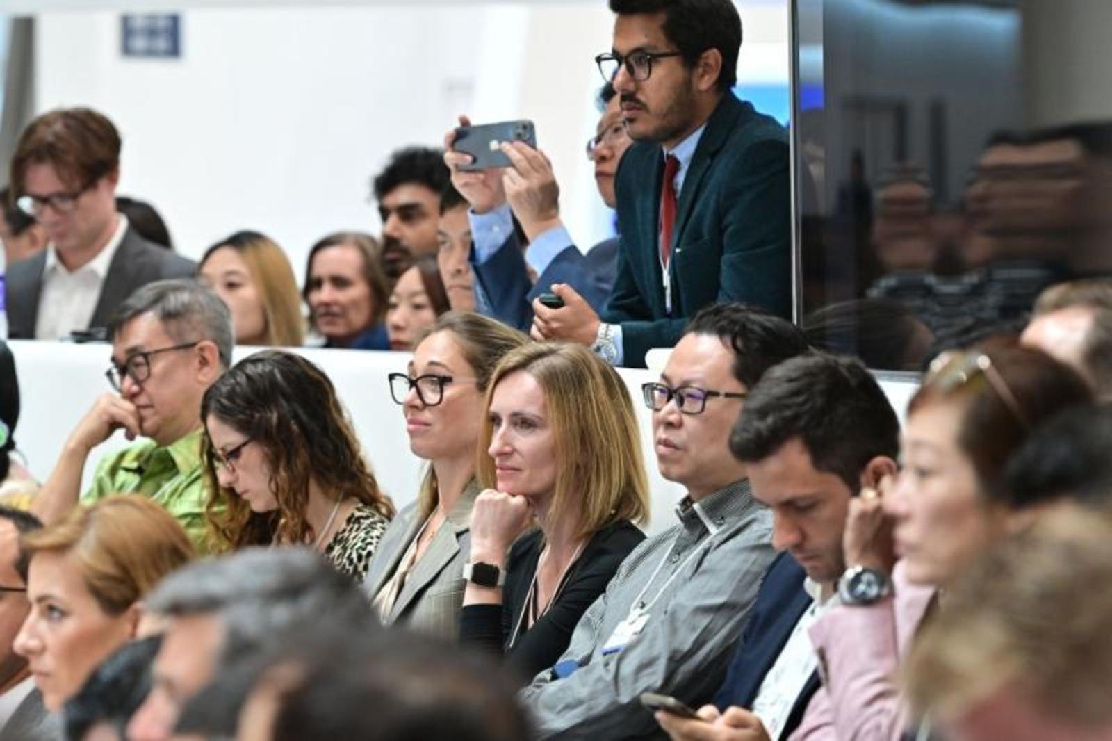 6月28日,与会者在论坛设置的新领军者村内聆听嘉宾发言。新华社记者 李鑫 摄