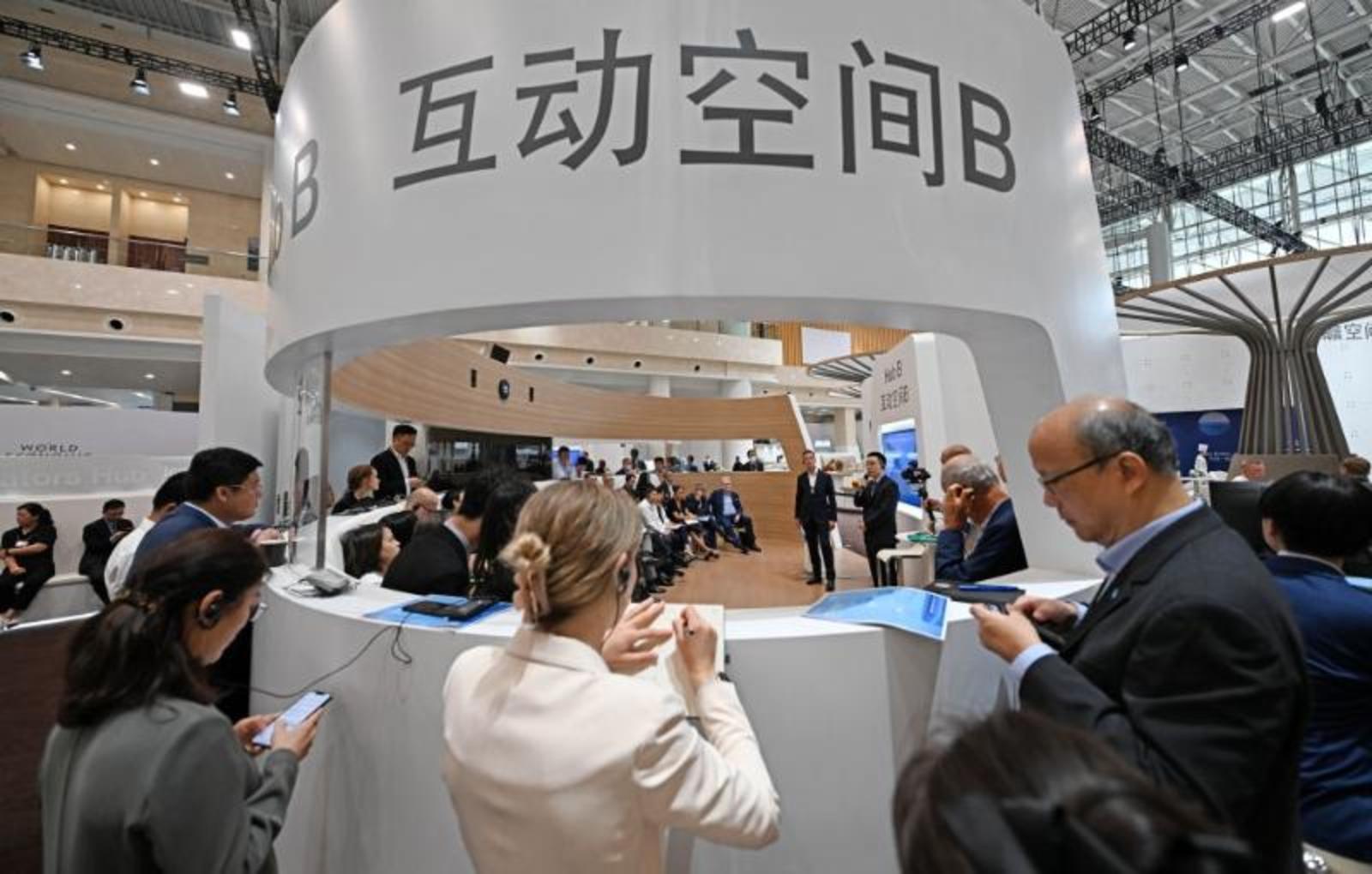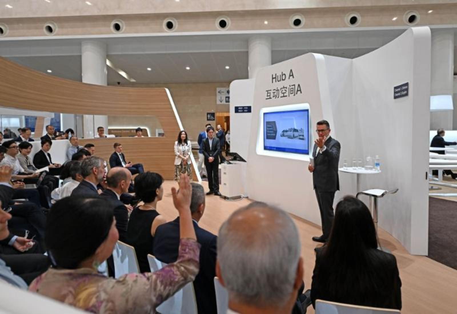 6月28日,与会者在论坛设置的新领军者村内围绕“车轮上的超级计算机”议题展开对话。新华社记者赵子硕摄