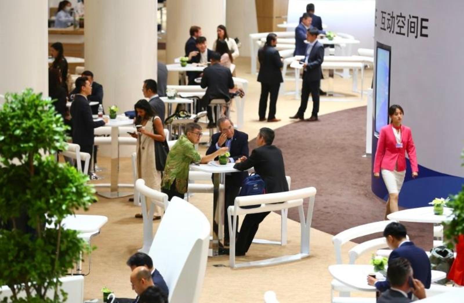 6月28日,与会者在论坛设置的新领军者村内交流。新华社记者李然摄