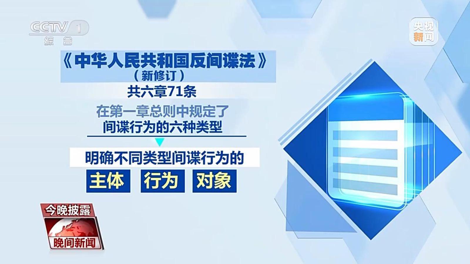 国家安全是安邦定国的重要基石。近年来,我国面临的安全威胁日趋多元,反间谍斗争形势也更加严峻复杂。从本月起,新修订的《反间谍法》开始施行。新法对间谍行为,做出进一步充实和细化。那么按照新法,哪些行为将被认定为间谍行为?作为普通群众,一旦发现间谍行为,又该如何处理呢?今晚披露,一块来关注。