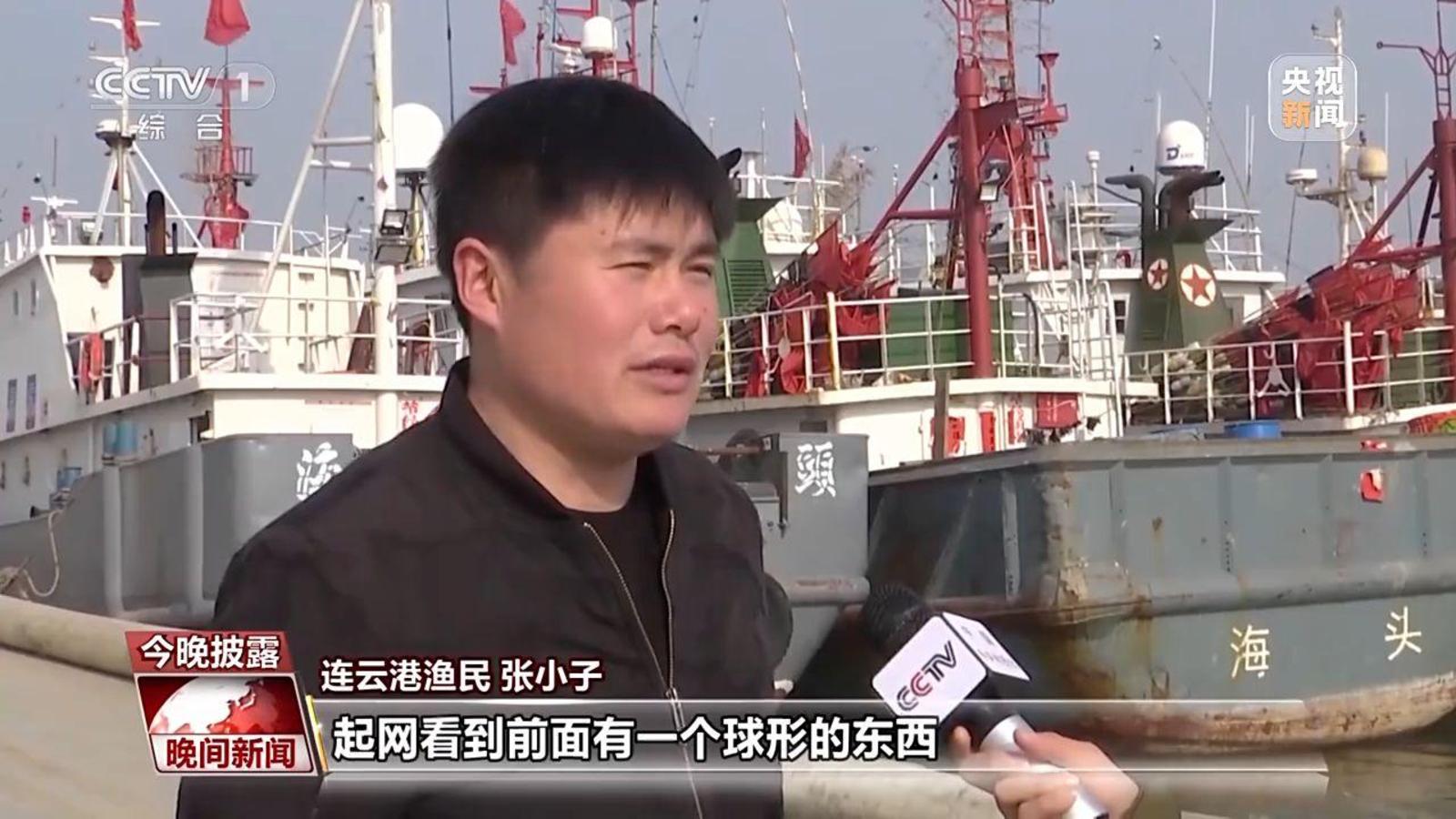 连云港渔民 张小子:起网看到前面有一个球形的东西,也不知道什么,就捞上来一看,上面还有外国字。讲座说捡到有外国可疑的装置,可以上交,我们船上有卫星电话,打电话联系,国家还给了奖励。