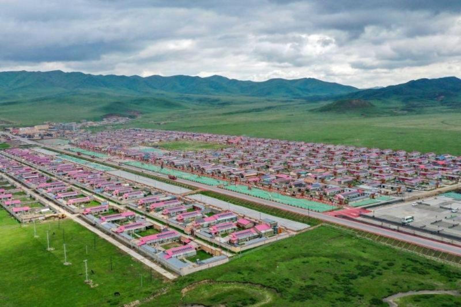盛夏,甘南草原碧绿无垠,蓝天白云下,一排排红瓦白墙的现代化藏式民居沿着国道213线两侧铺展开来,牧民脸上挂着的喜悦笑容像格桑花一样灿烂。