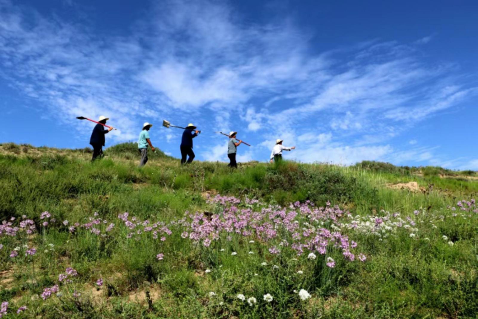 八步沙林场职工在治沙区巡查 古浪县委宣传部供图
