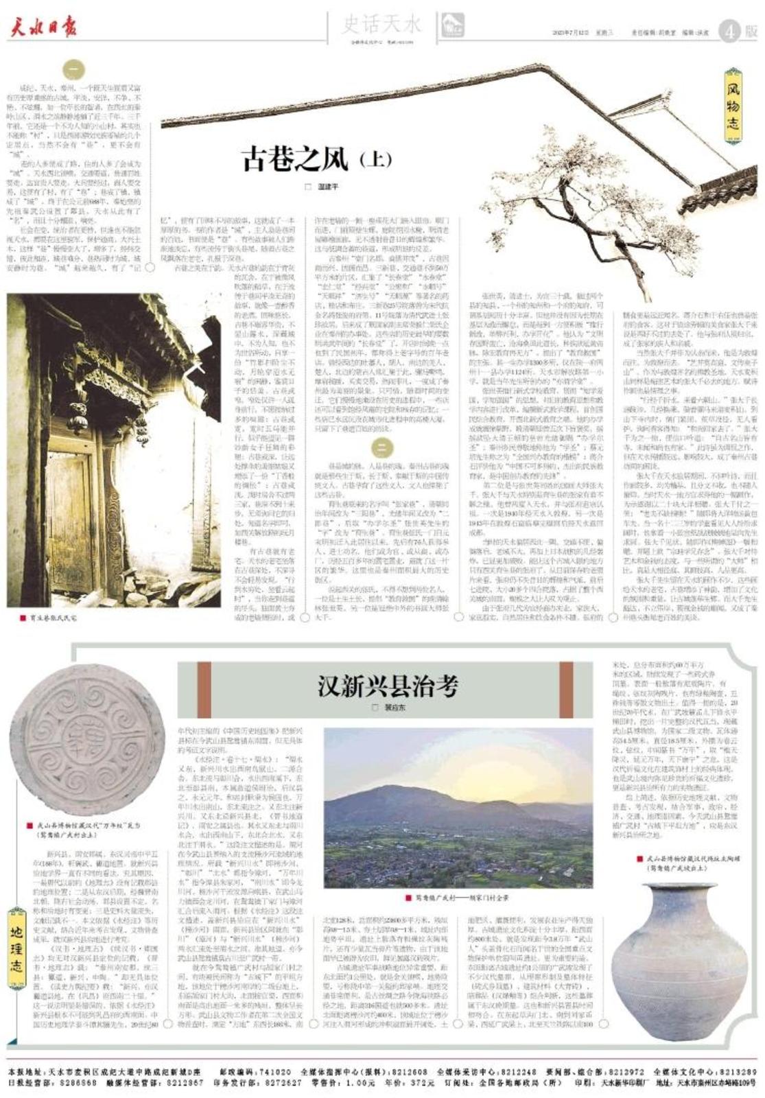 新兴县,南安郡属,东汉灵帝中平五年(188年),析襄武、豲道地置。就新兴县治地学界一直有不同的看法,究其原因,一是唐代以前的《地理志》没有记载郡县的地理位置;二是从东汉后期,经魏晋南北朝,陇右社会动荡,郡县设置不定,名称和治地时有变更;三是史料大量流失,文献记载不一。本文依据《水经注》等历史文献,结合近年来考古发现、文物普查成果,就汉新兴县治地进行考究。