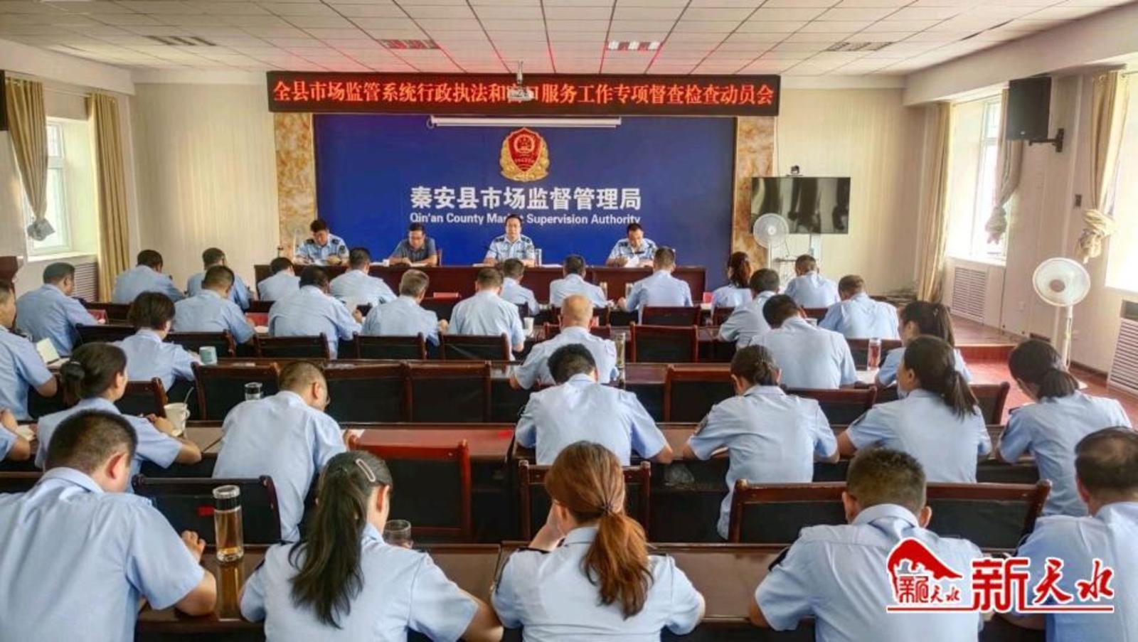 新天水讯【通讯员王顺芳】 7月28日,秦安县市场监管局召开全县系统行政执法和窗口服务专项监督检查动员会议,进一步激发市场主体发展活力,持续优化营商环境,提升市场监管系统政务大厅窗口服务效能,促进依法行政,规范文明执法。