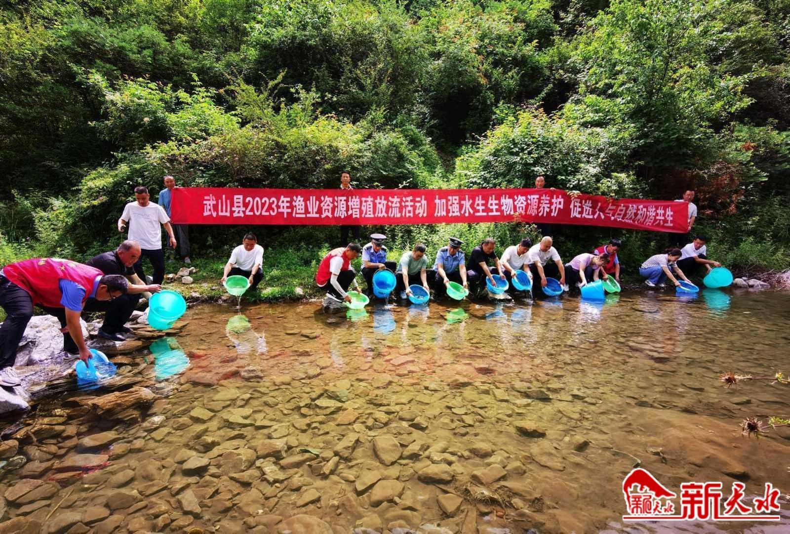新天水讯 为进一步改善水域生态环境,保护种质资源,维护全县重点水域水生生物多样性,近日,武山县畜牧兽医事务服务中心组织相关部门在龙台镇董庄村上河峪上游河流段、城关镇宁远生态园、榜沙河马力段、大南河四门段等自然水域开展2023年渔业资源增殖放流活动。