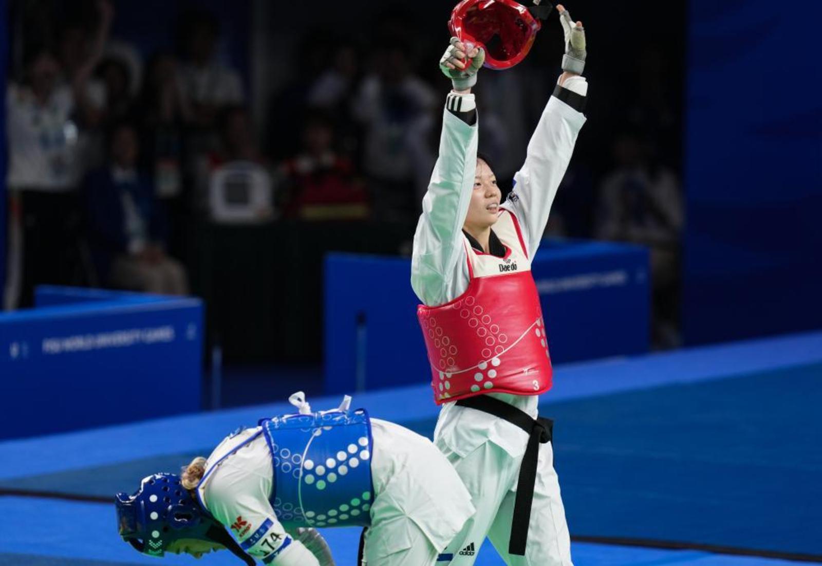 中国队还在跆拳道项目上获得两枚金牌,宋洁逆转夺得女子67公斤级冠军,张凯则拿下男子80公斤级金牌。