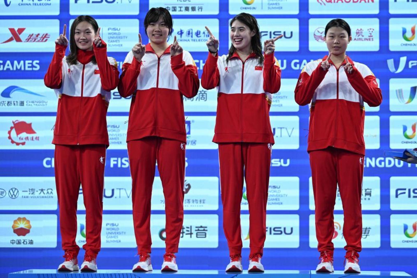 从日本福冈世锦赛凯旋的世界“蛙王”覃海洋和“蝶后”张雨霏当天凌晨才到成都,随即刷新男子100米蛙泳和女子50米蝶泳的赛会纪录。张雨霏还率领中国队以3分37秒51的成绩创造了女子4x100米自由泳接力赛会纪录,开启成都大运会游泳夺金之旅。
