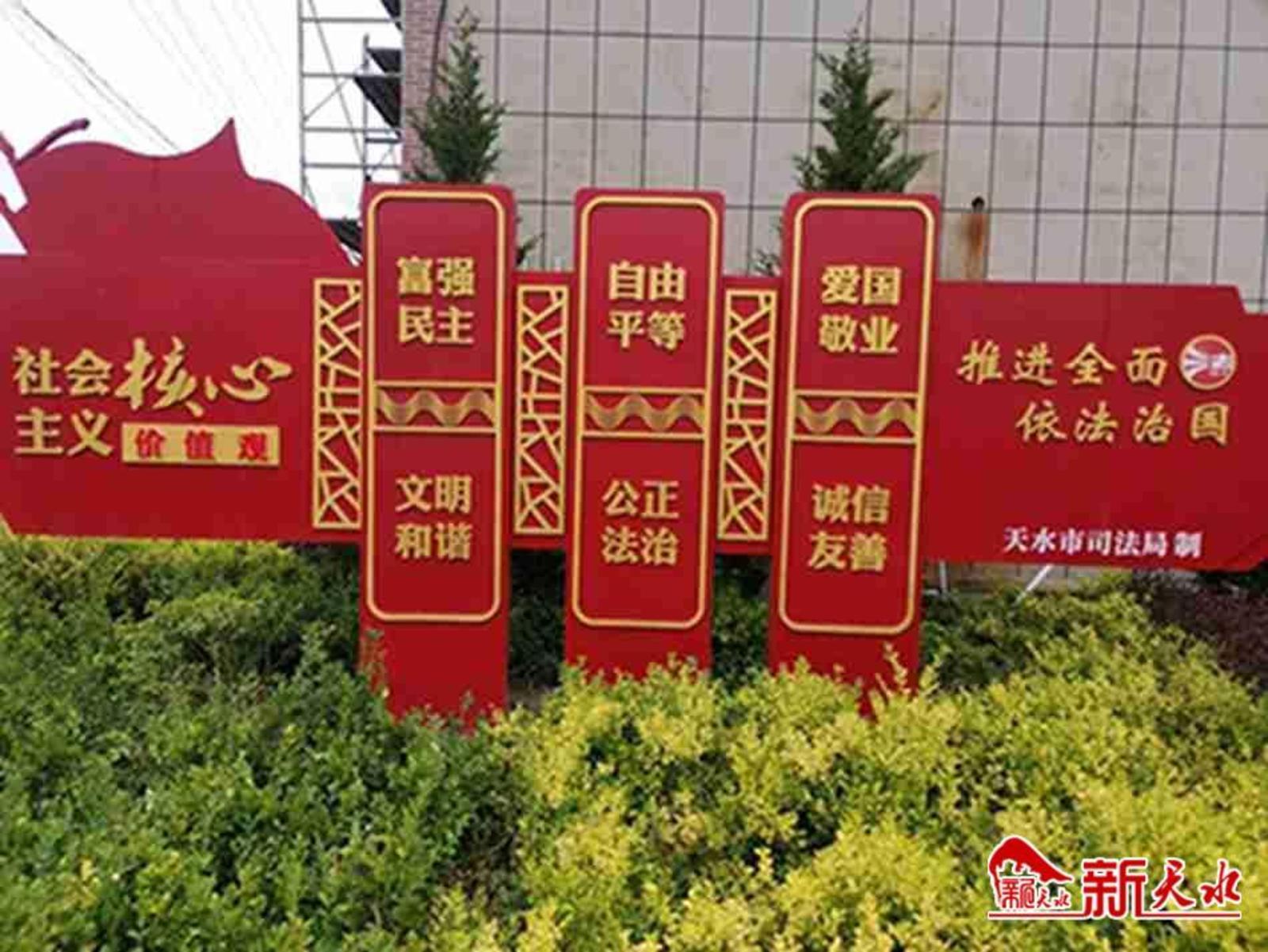 新天水讯 为大力弘扬法治精神,切实增强全民法治观念,营造浓厚的法治氛围,今年以来,天水市司法局、张家川县司法局联合在张家川县胡川镇张堡村精心设计打造了法治文化广场。