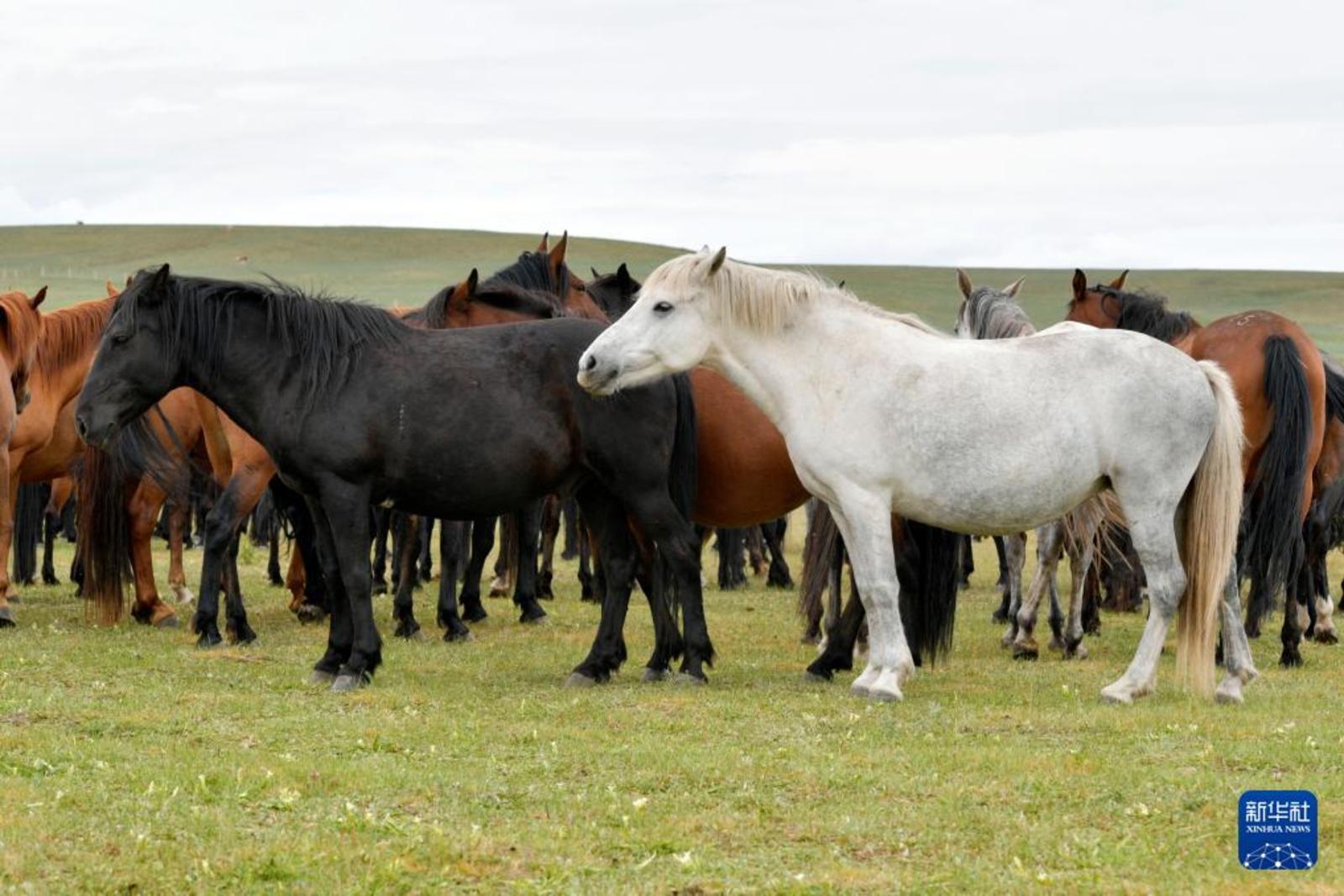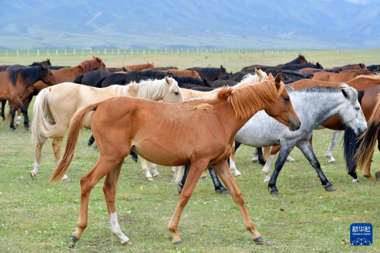 这是8月6日在山丹马场一场有限责任公司拍摄的马群。新华社记者 马宁 摄