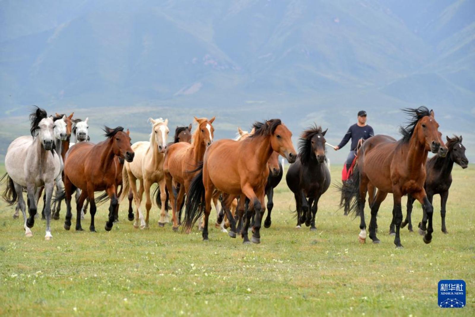 夏日,在位于河西走廊中部、祁连山冷龙岭北麓大马营草原的山丹马场,成群的骏马欢腾觅食,十分壮观。自汉代起,山丹马场就开始养马。如今,“山丹马”保种和速力型赛马培育是山丹马场养殖业发展的重要方向。
