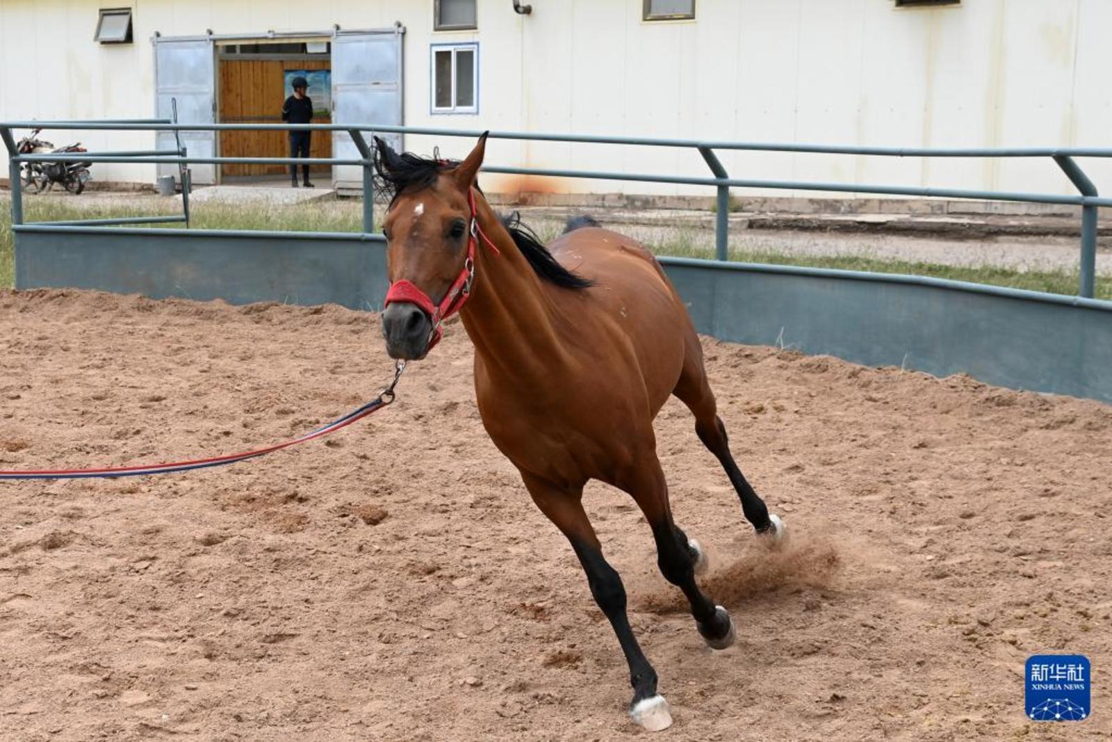 这是8月6日在山丹马场一场有限责任公司拍摄的种马。新华社记者 范培珅 摄