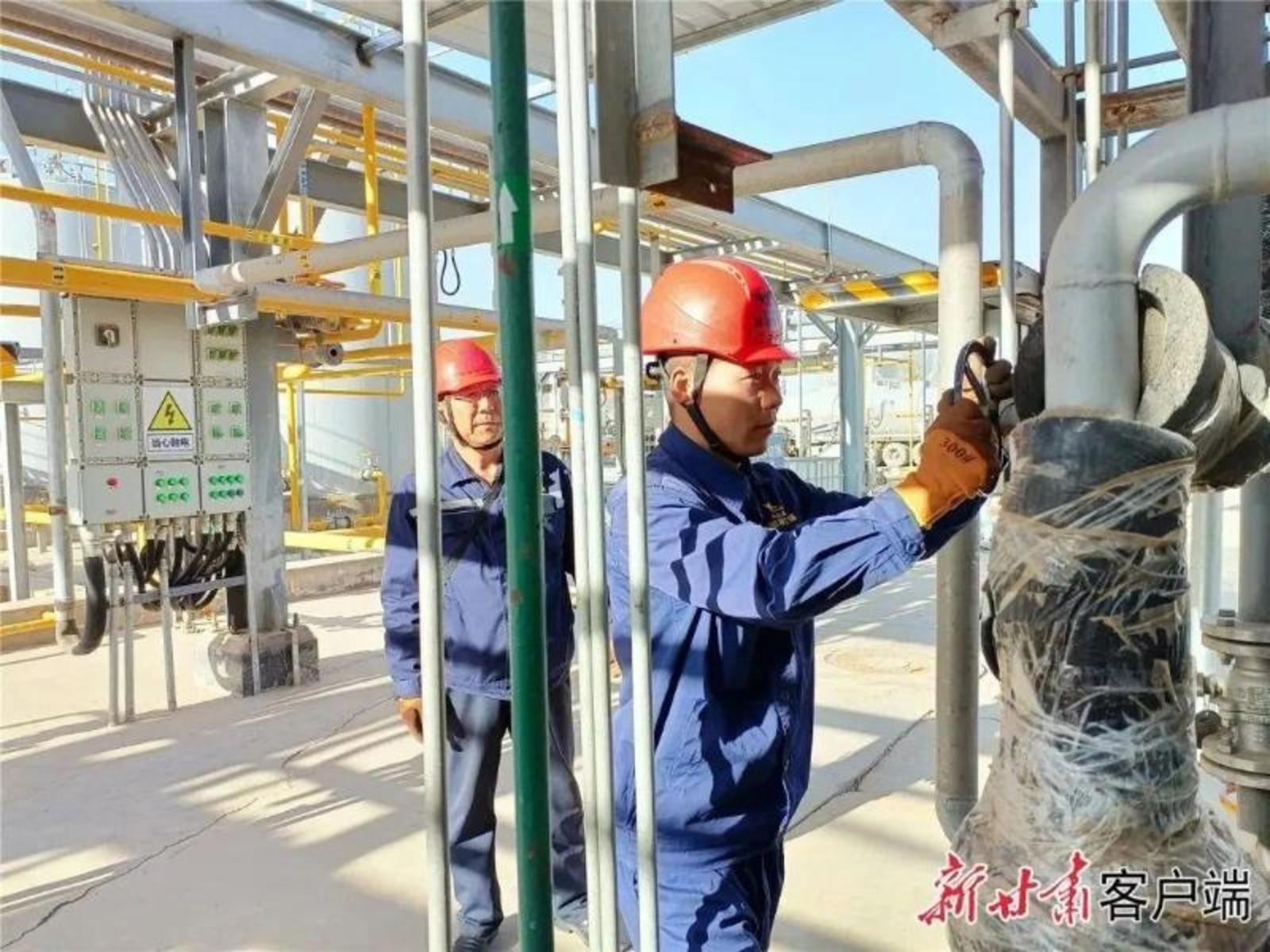 ▲兰州隆华特种气体科技有限公司工作人员正在开启高纯氨联产装置生产管道阀门。