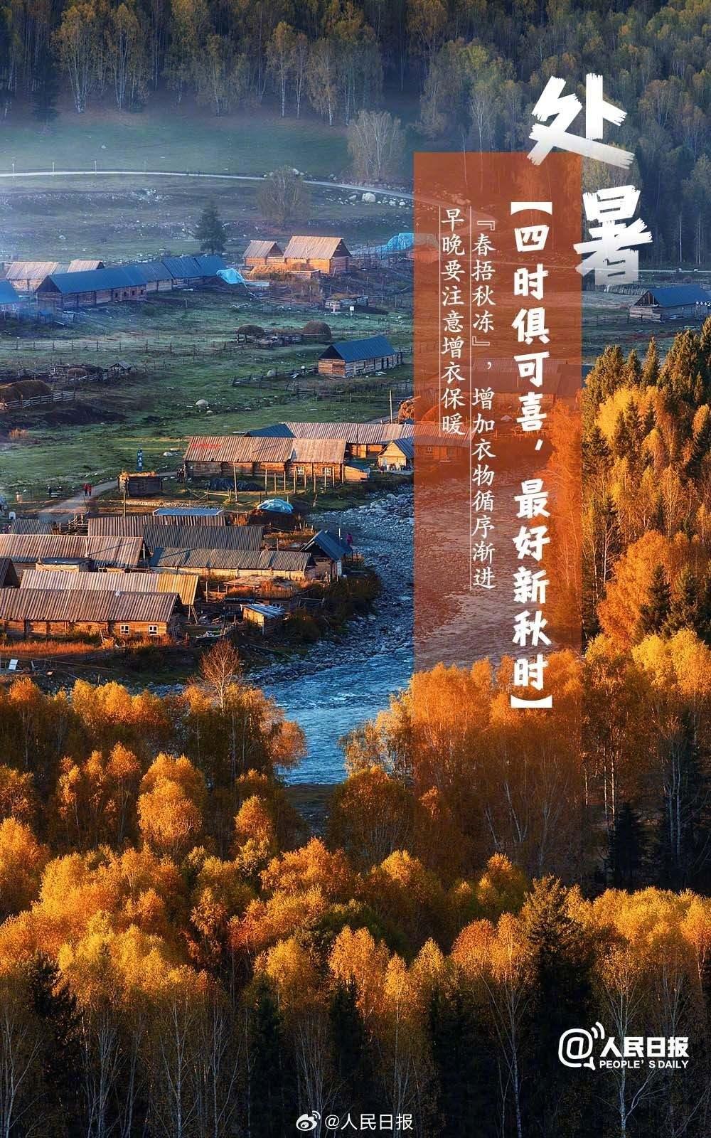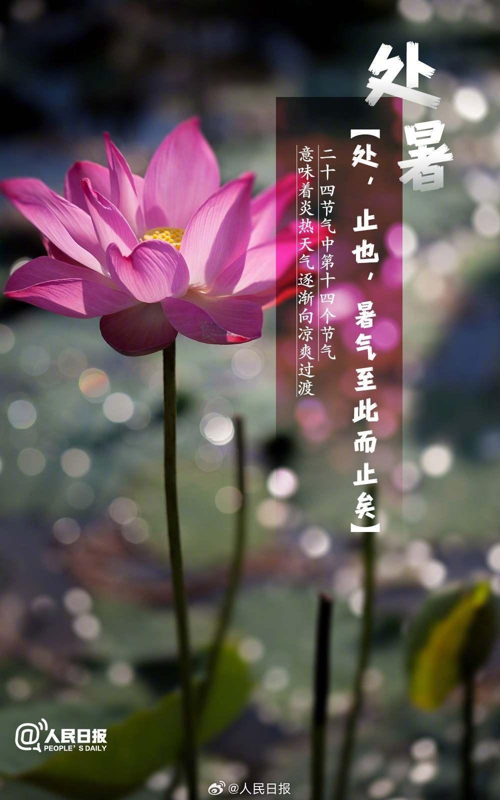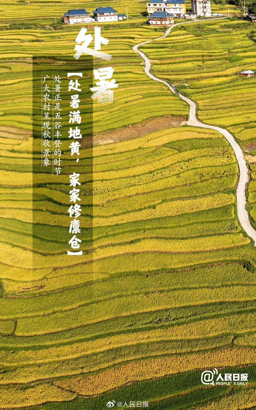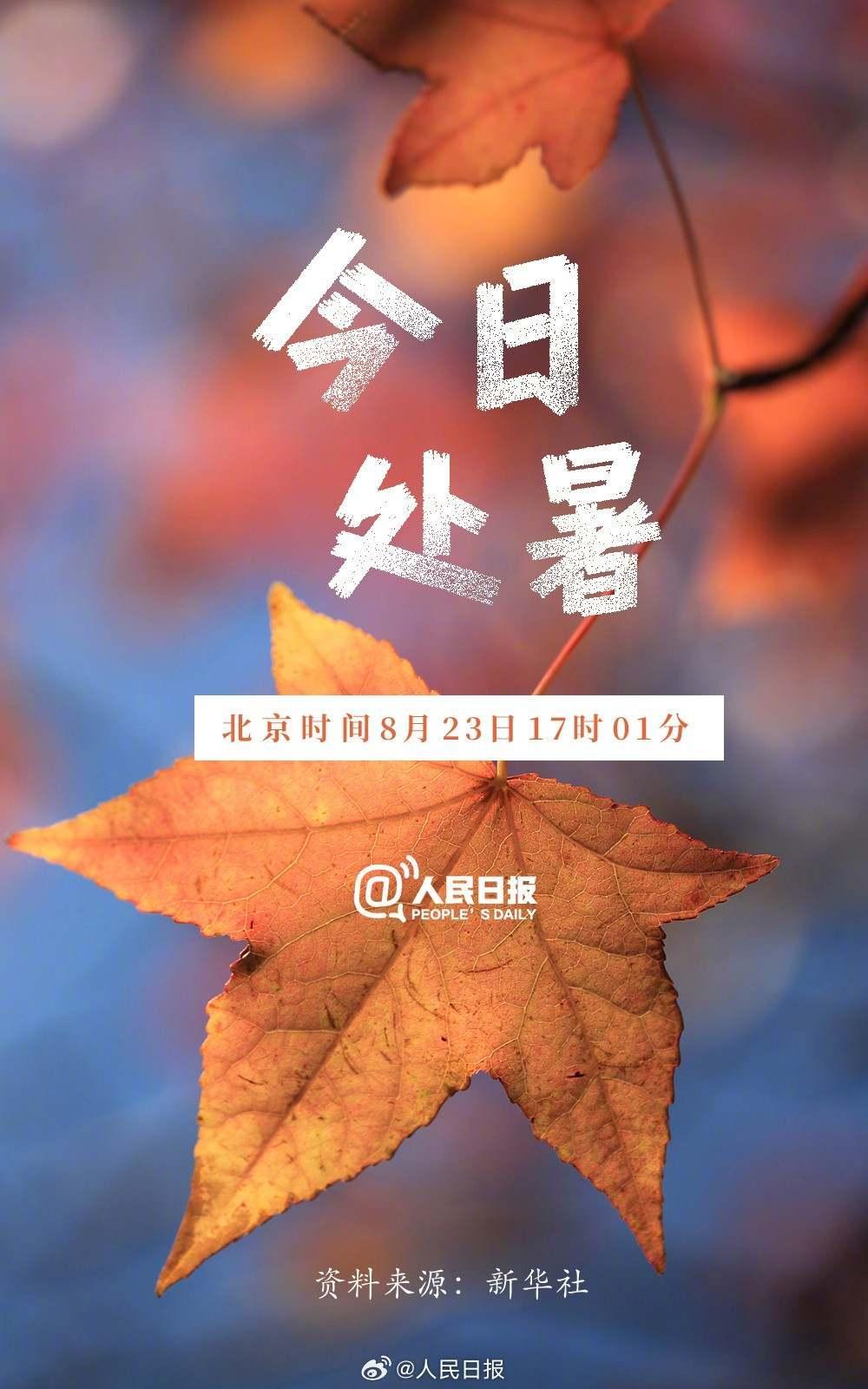 ①今日17时01分,处暑至。②“离离暑云散,袅袅凉风起”。暑气渐将消散,金秋正在缓缓开启。③南方地区仍有“秋老虎”,需注意防暑。④此时早晚温差较大,应及时增减衣服,同时重视锻炼,趁秋景正好多到户外走走。处暑来了,一起迎接渐变色的秋天! (来源:人民日报微博)