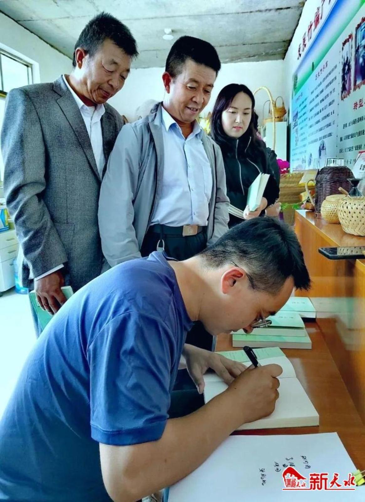 王选则为大门镇政府、关峡村委会赠书,并现场为当地群众签名赠书。