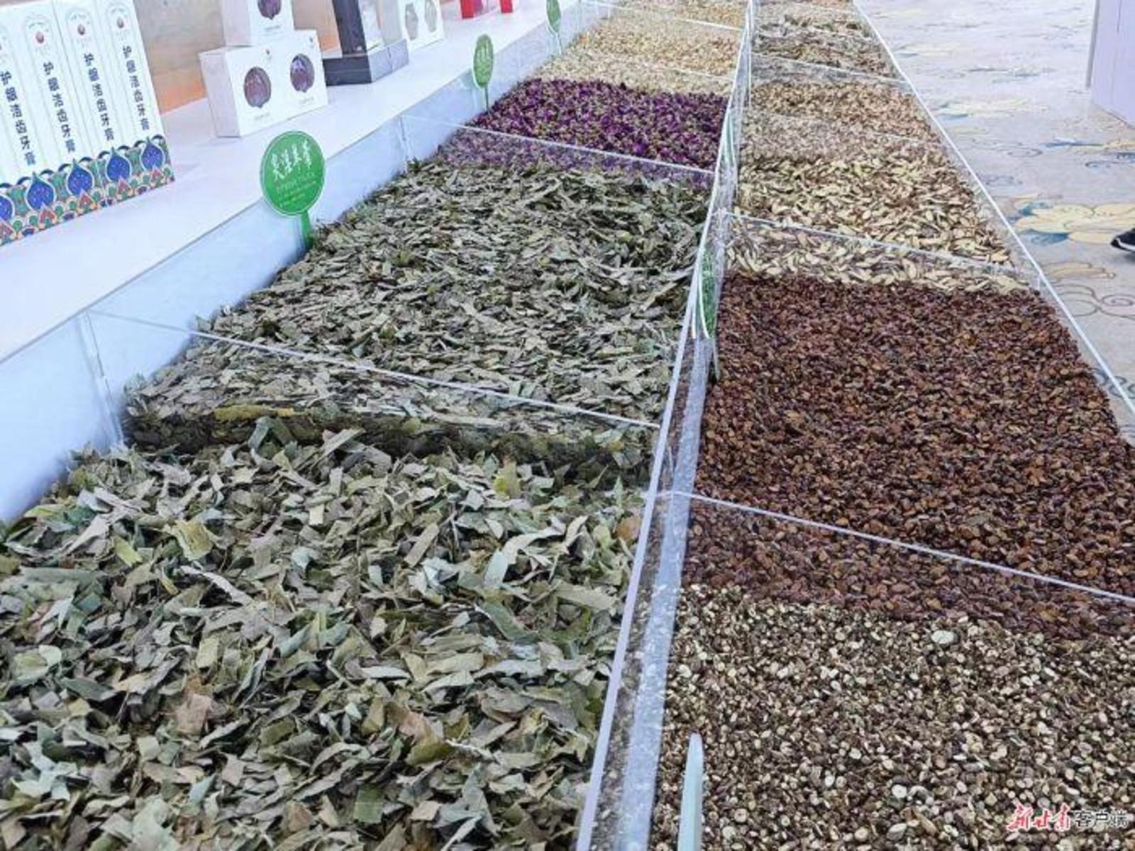 展台里的中药材。