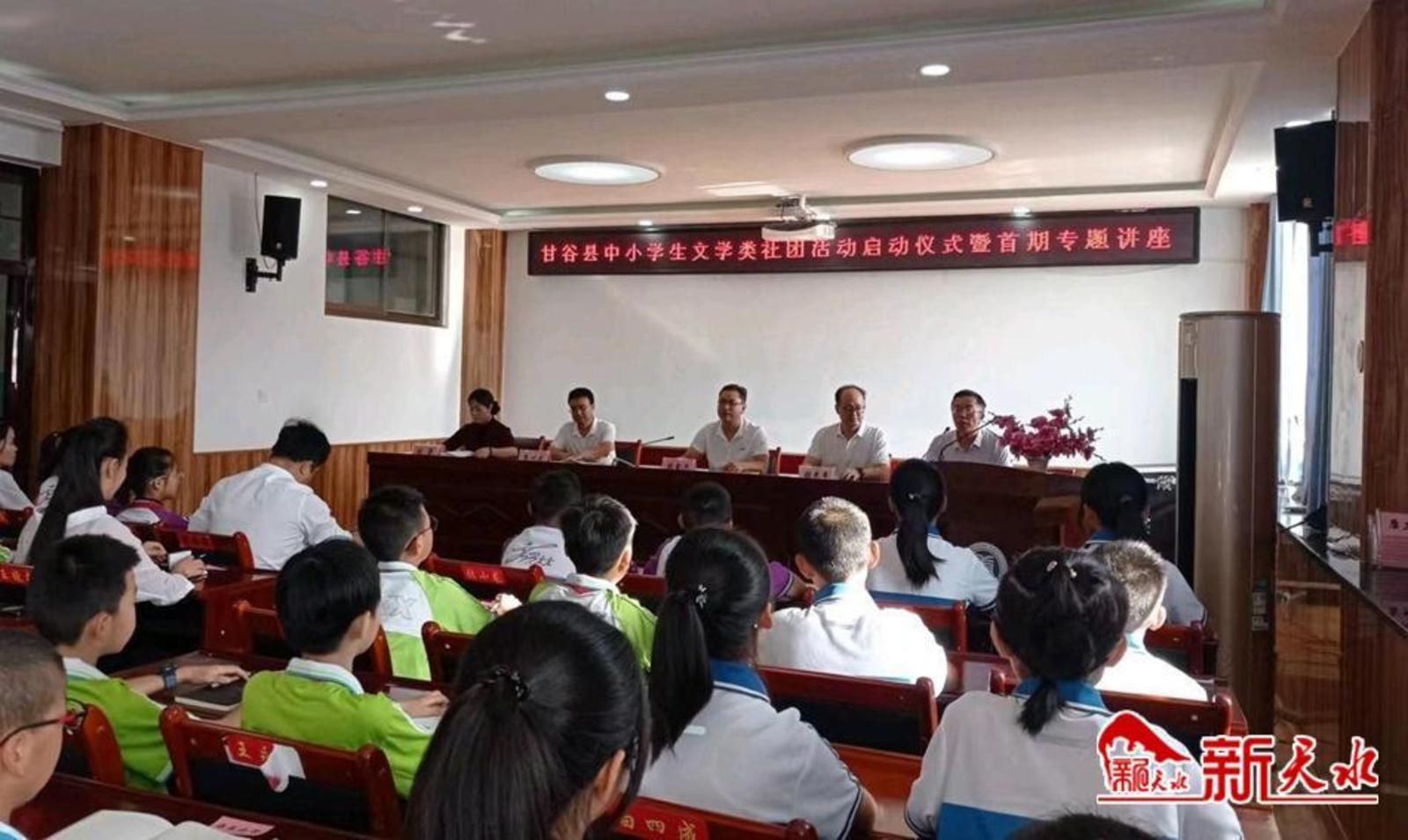 新天水讯【特约通讯员王建军 谢保红 李小丽】9月3日,甘谷县中小学生文学类社团活动启动仪式暨首期专题讲座在康庄中学举行,部分教师和学生代表共计150余人参加会议。