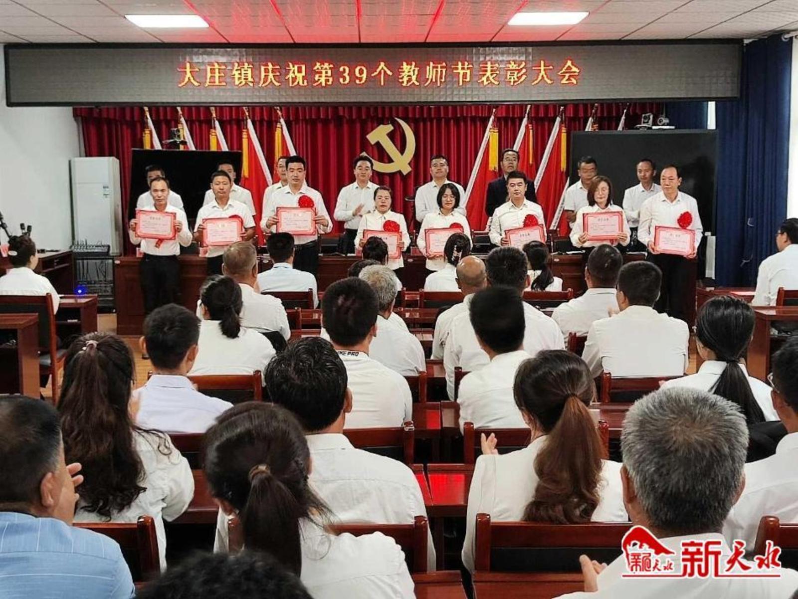 新天水讯 9月7日,甘谷县大庄镇召开庆祝第39个教师节表彰大会,表彰优秀教师、优秀班主任、优秀教育工作者和师德先进个人,优秀教师和优秀班主任代表作交流发言。