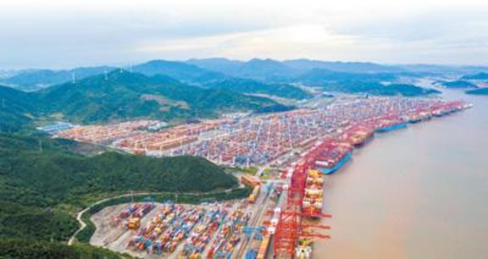2023年6月,浙江省宁波舟山港穿山港区集装箱码头,生产泊位“座无虚席”。