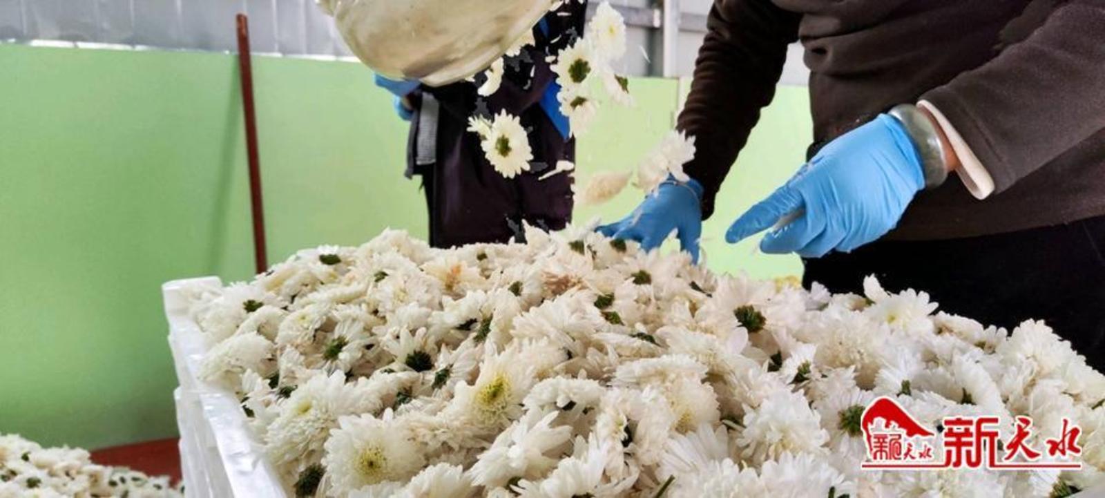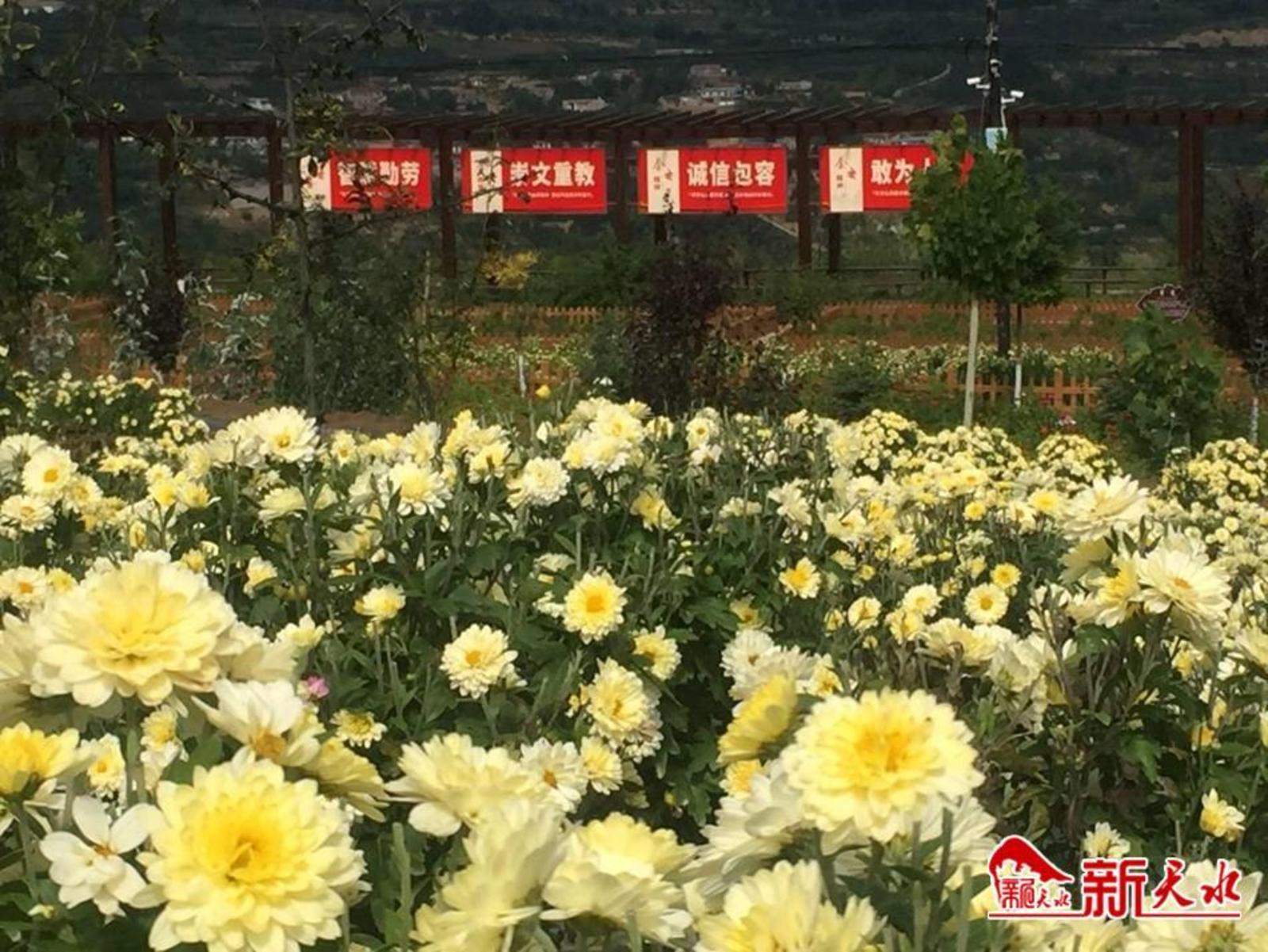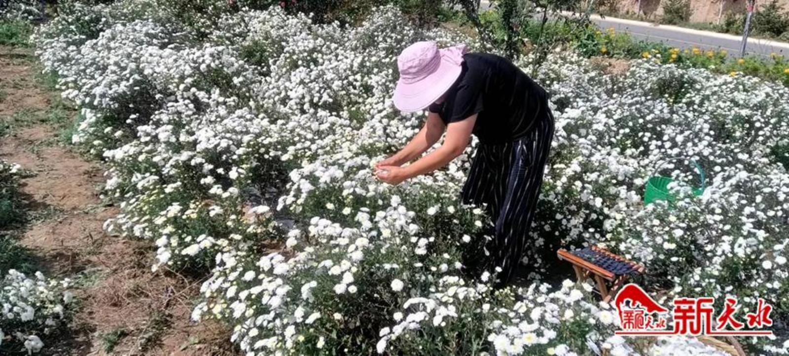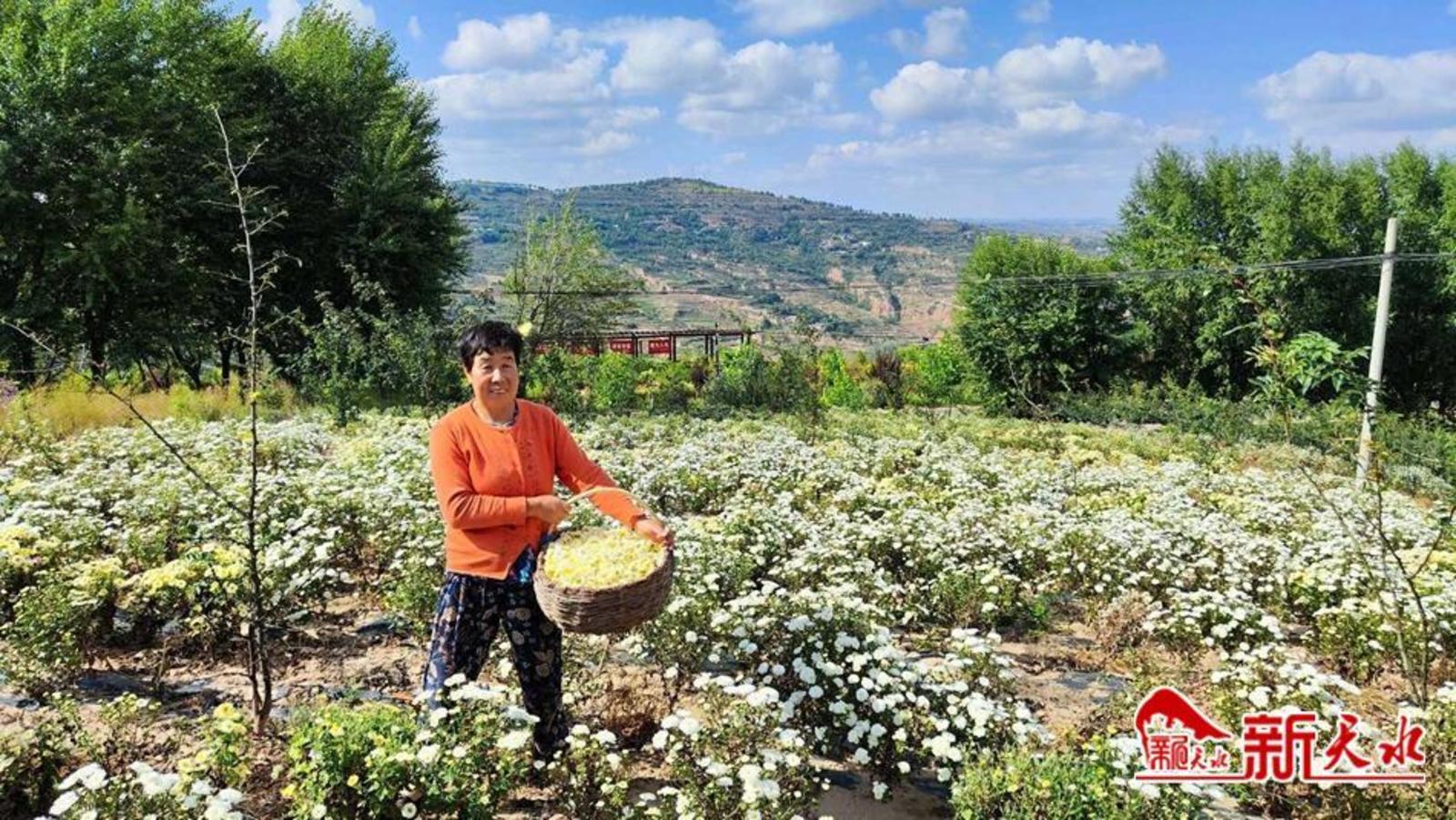 新天水讯 金秋时节,菊花飘香。笔者走进秦安县千户镇杏树湾流域菊花基地,放眼望去,连片白菊竞相开放,花香沁人心脾,美不胜收,30多名村民或弯腰或下蹲,正忙着采收菊花,不远处,在千户镇花椒中药材产业园内村民接连不断地将一筐筐摘好的菊花过秤计量,在烘干车间内,工人们正熟练地将刚采摘下来的菊花摆放在晾干架上,推进烘干房进行烘干。每个人脸上都写满了丰收的喜悦,构成一幅美丽的乡村丰收图。