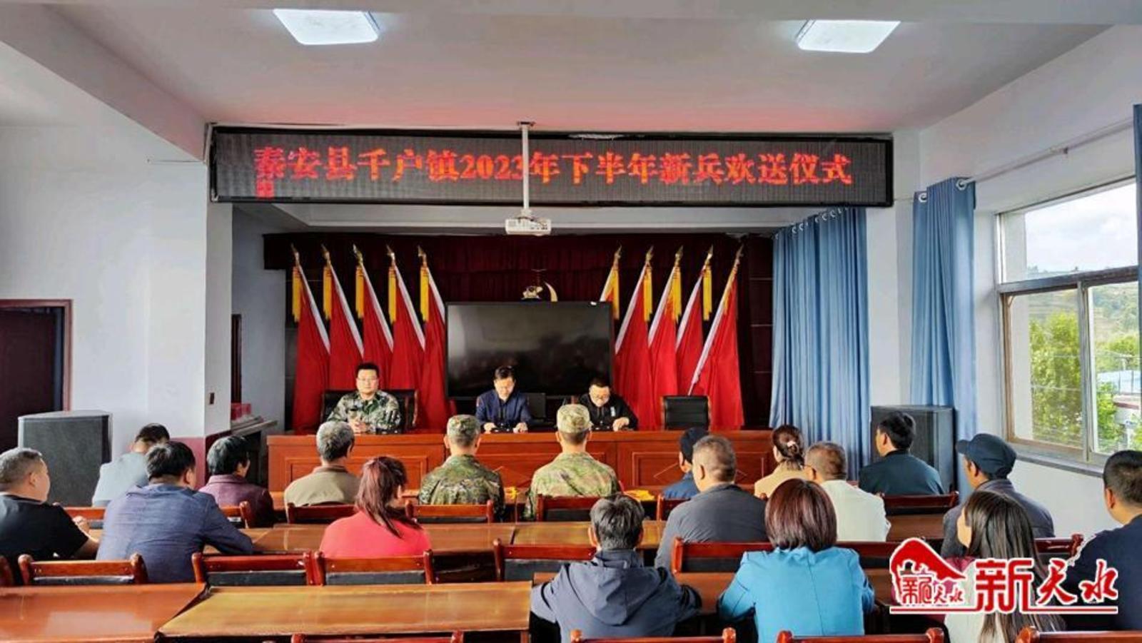 新天水讯 9月15日,秦安县千户镇召开2023年下半年新兵入伍欢送大会,为即将开启军旅生涯的新兵们送行。镇领导班子全体成员、村干部代表和新兵亲属参加会议。