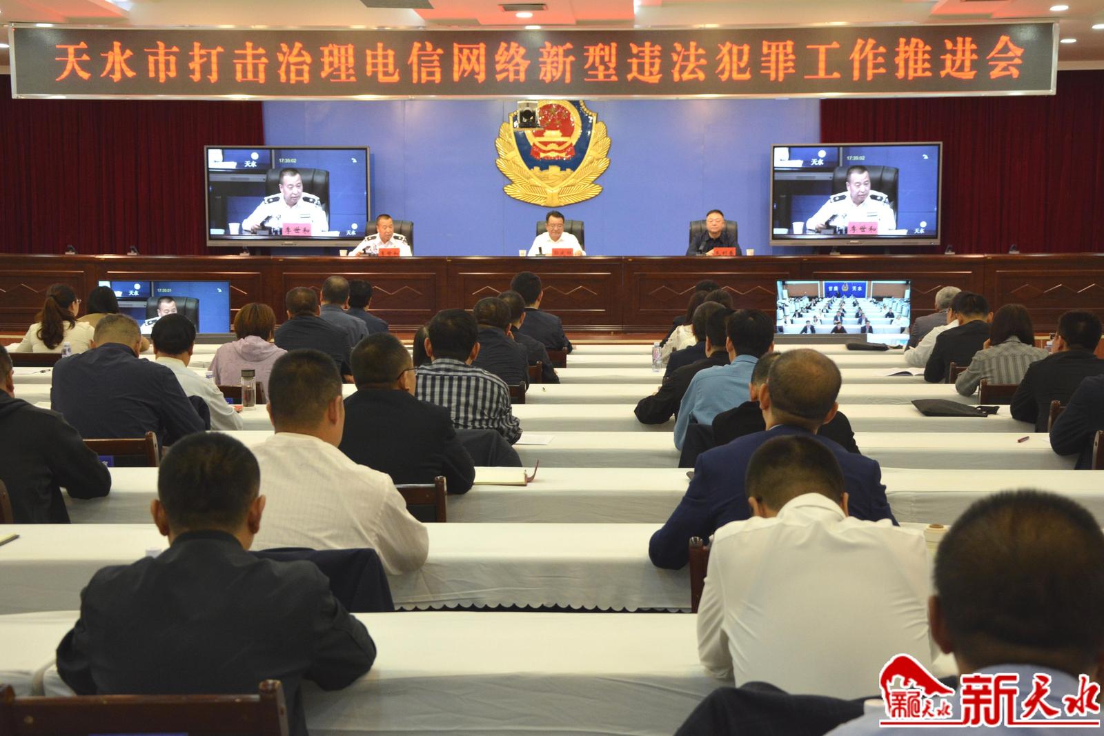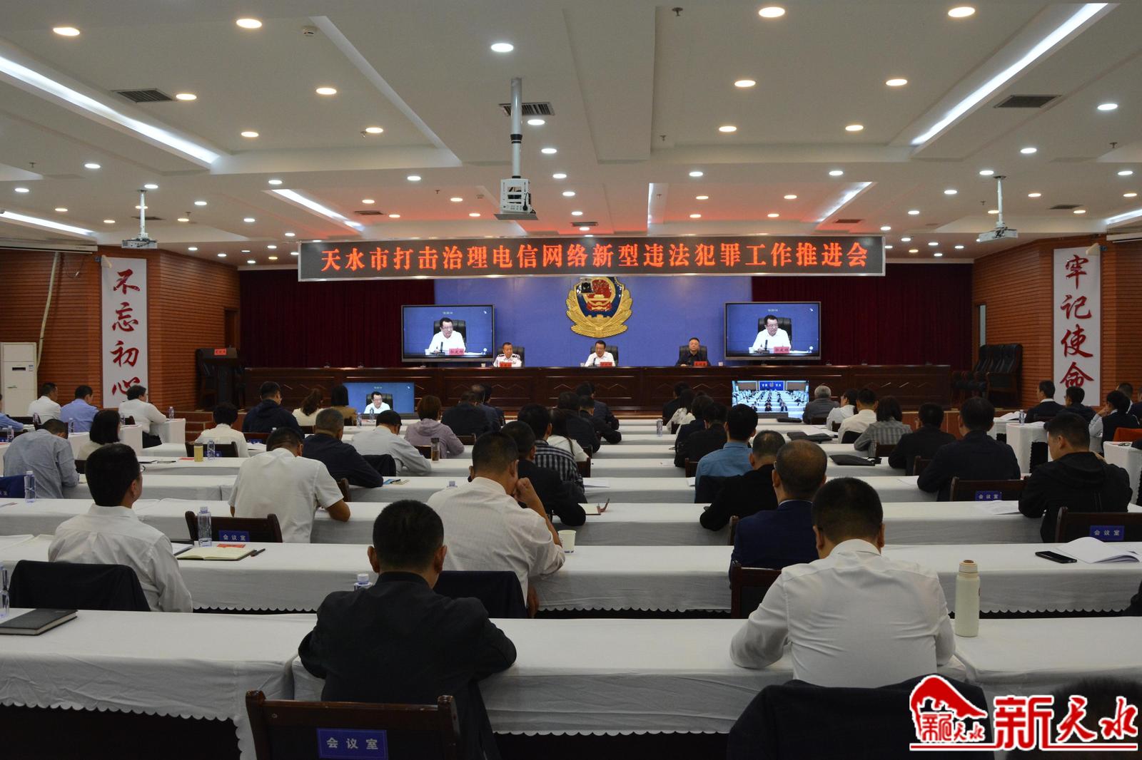 新天水讯【记者马哲】9月23日,全市打击治理电信网络新型违法犯罪工作推进会召开。会议深入学习贯彻习近平总书记关于打击治理电信网络诈骗犯罪工作的重要指示批示精神,全面贯彻落实市委市政府和省联席会议部署要求,分析形势任务,检视问题不足,压紧靠实责任,着力推动全市打击治理电信网络新型违法犯罪工作取得更大成效。副市长、市联席会议召集人郭庆祥出席会议并讲话。