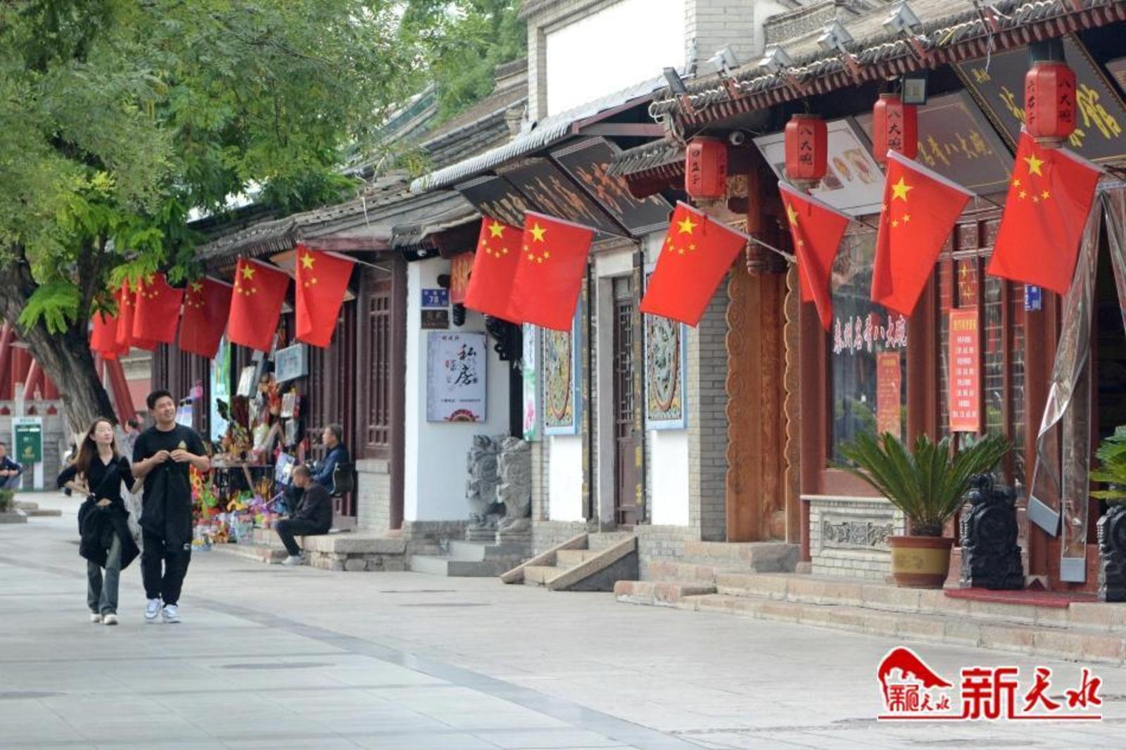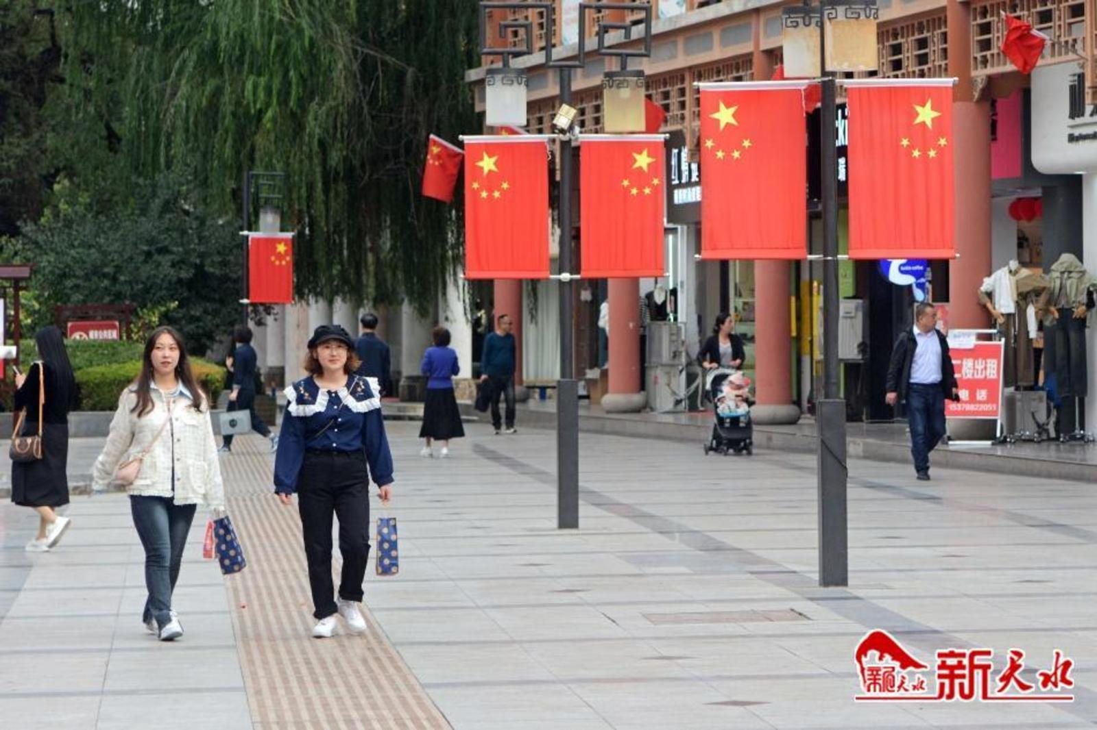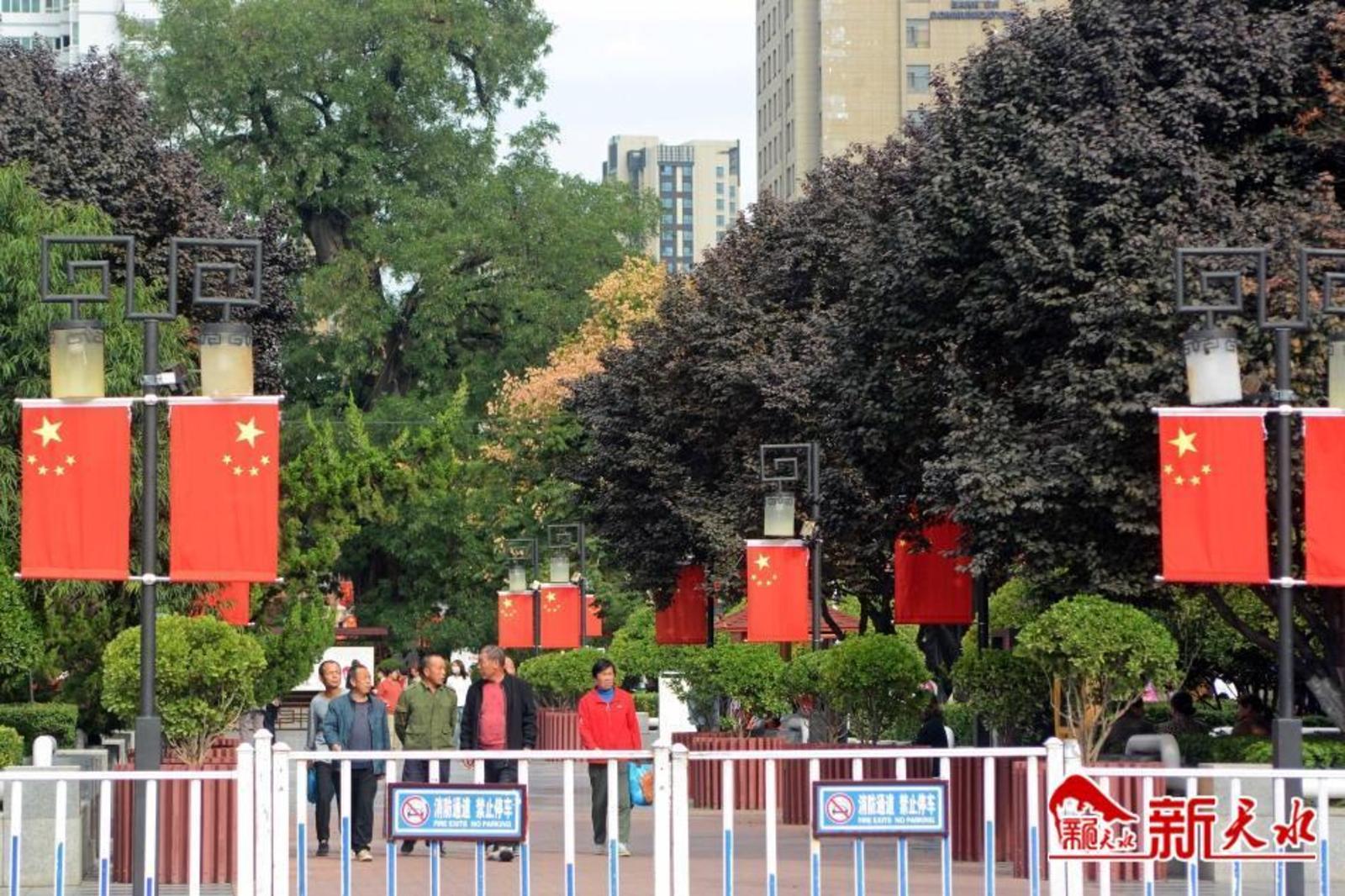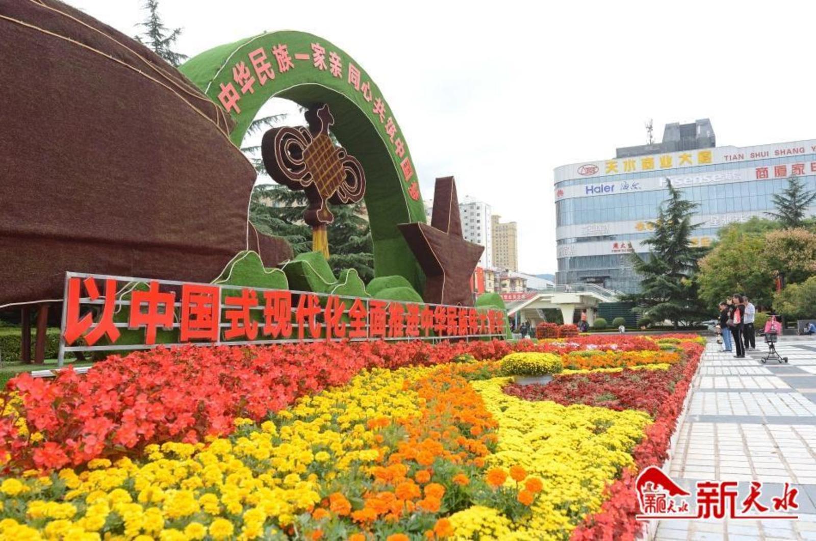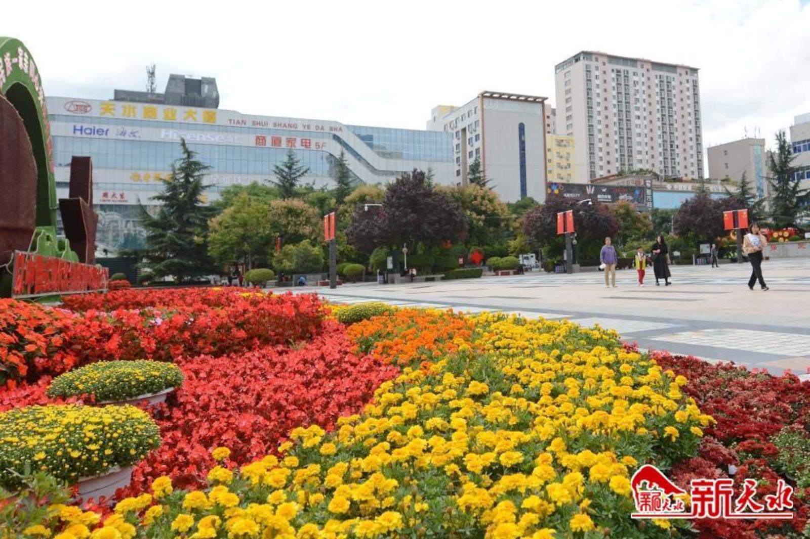 国庆前夕,走在天水城区的各条街道和大小广场,放眼望去,一面面五星红旗迎风飘扬,一盆盆鲜花组成的花箱、花钵、花柱和立体景观,营造出喜庆祥和的节日氛围。