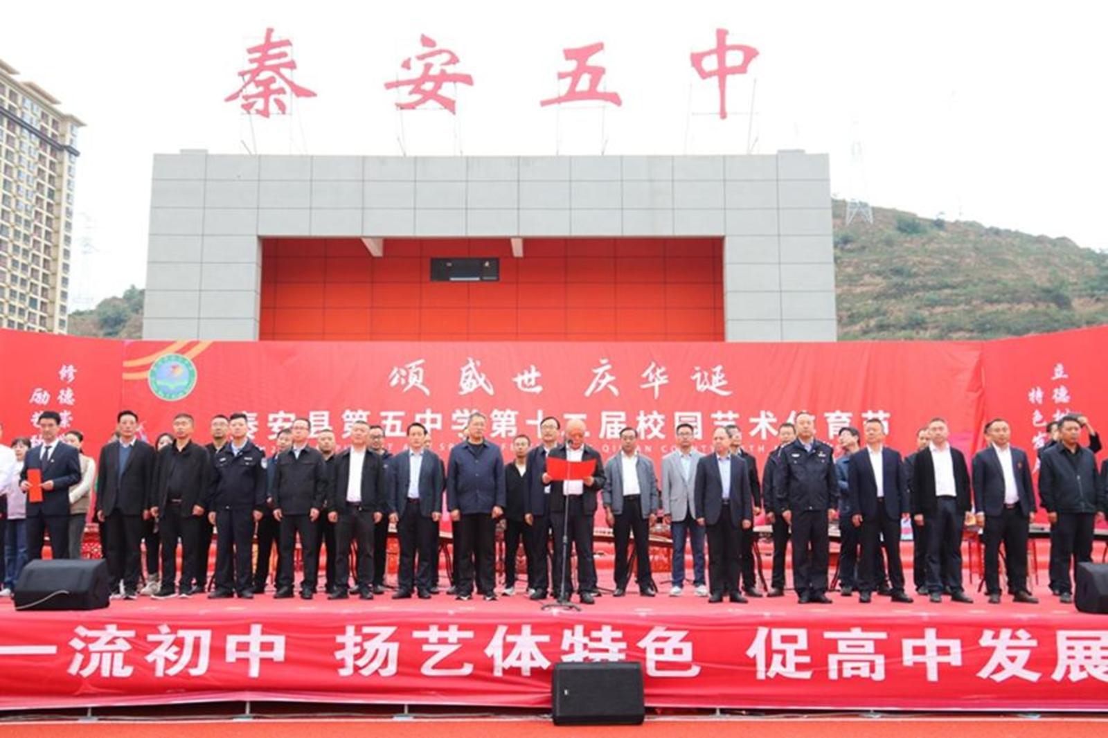 新天水讯 据秦安县融媒体中心消息 秋风送爽,丹桂飘香。为大力弘扬中华优秀传统文化,加强师生体育锻炼意识,丰富学生的校园生活,培养学生集体荣誉感。9月26日,秦安县第五中学举行第十二届校园艺术体育节。县政府副县长张涛涛,县教育局负责人,受邀嘉宾和全体师生参加开幕式活动。