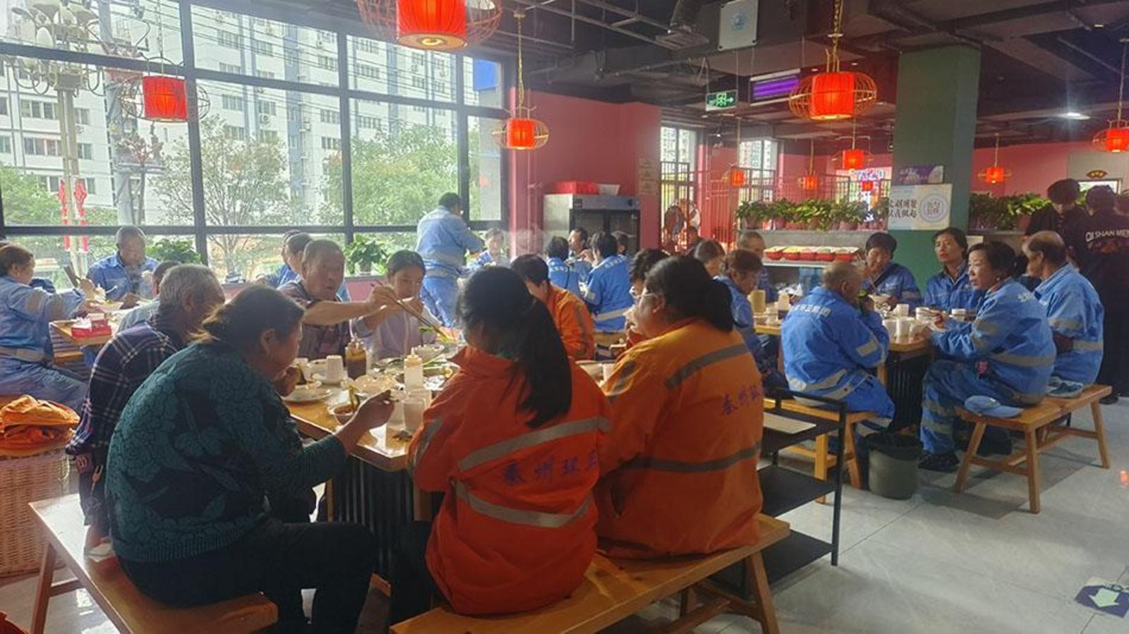 “因为环卫工人很辛苦,今天我们给环卫工人上了有20多道菜,希望我们环卫工人以后越来越好,在这里感谢环卫工人,让我们的城市更加干净。” 七扇门火锅店服务员吴景玺说。