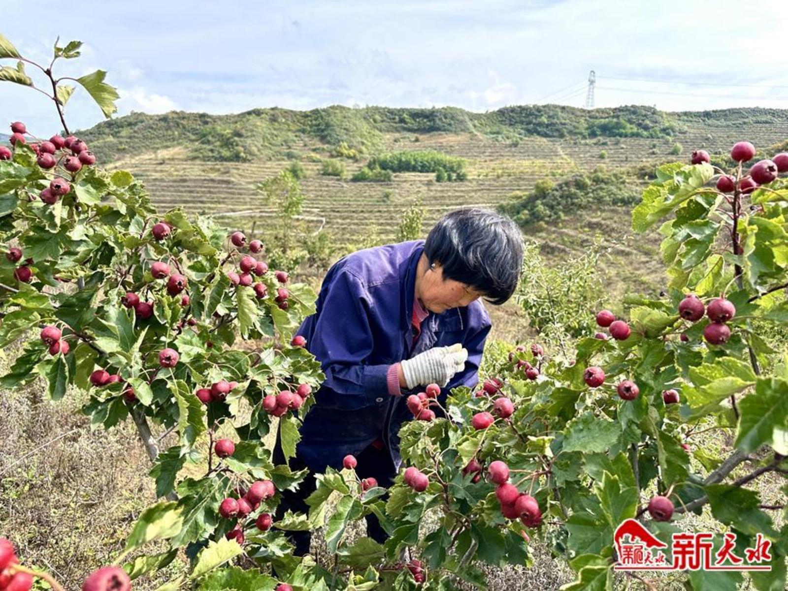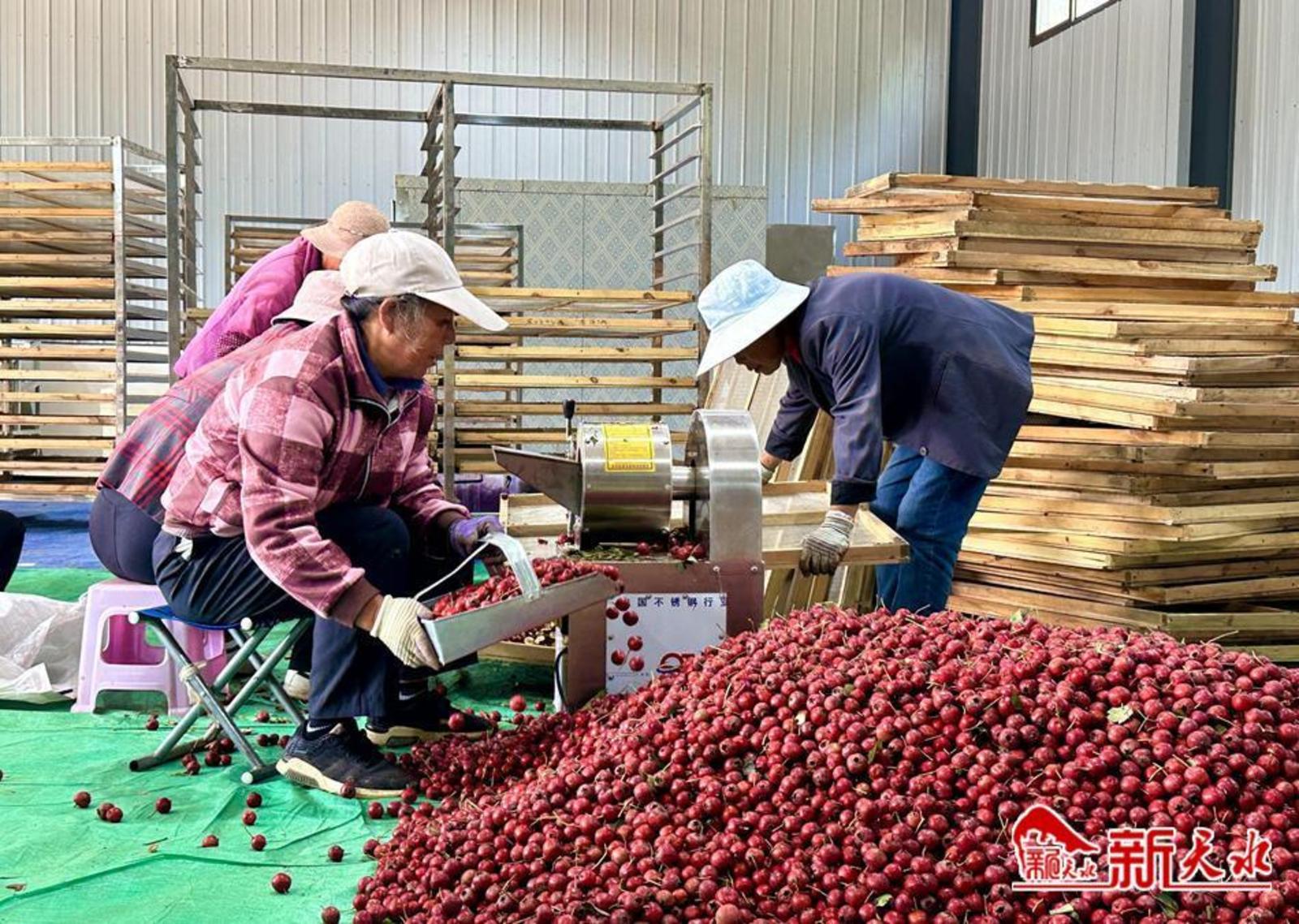 新天水讯 深秋时节,秦州区牡丹镇上千亩山楂陆续成熟。10月9日,走进天水兴华荣生态农业产业园里,务工人员正忙着进行山楂采摘、分拣、烘干、储存等工作。今年,该产业园近1000亩山楂喜获丰收,预计产量超过5万斤,收益达20万元以上。