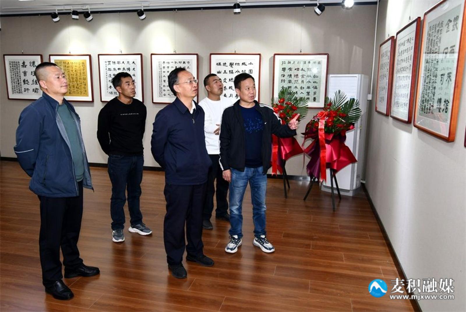 新天水讯 据麦积区融媒体中心消息 10月10日,由麦积区文体广电和旅游局、区文学艺术界联合会主办,区文化馆、区书法家协会承办,麦积区怀宝堂书画社协办的“问道麦积”——耿歧超书法作品邀请展在区文化馆开展。