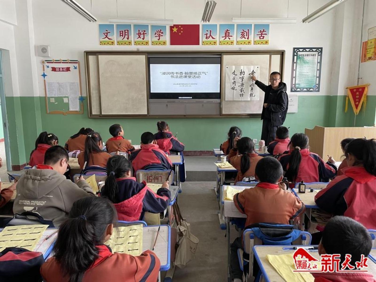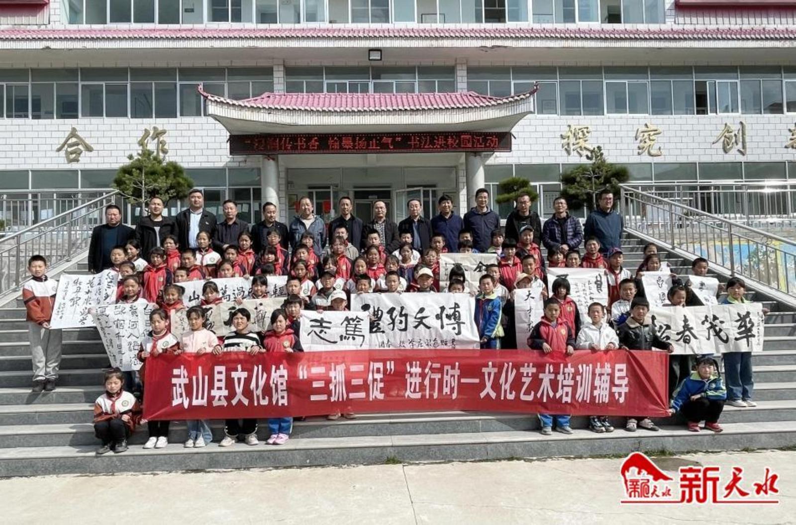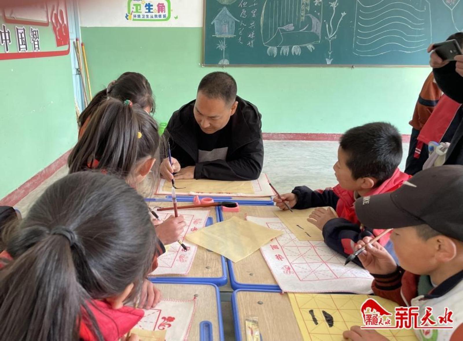 新天水讯 【记者 裴婷婷】红叶映秋阳,校园翰墨香。10月13日,武山县文化馆组织的书法人员走进武山县温泉镇包家庄九年制学校,开展“浸润传书香 翰墨扬正气”书法进课堂活动。