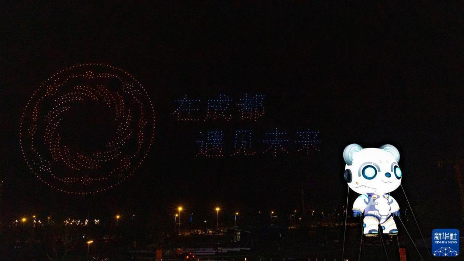 这是10月18日晚在第81届世界科幻大会开幕式上进行的无人机表演。新华社记者 沈伯韩 摄