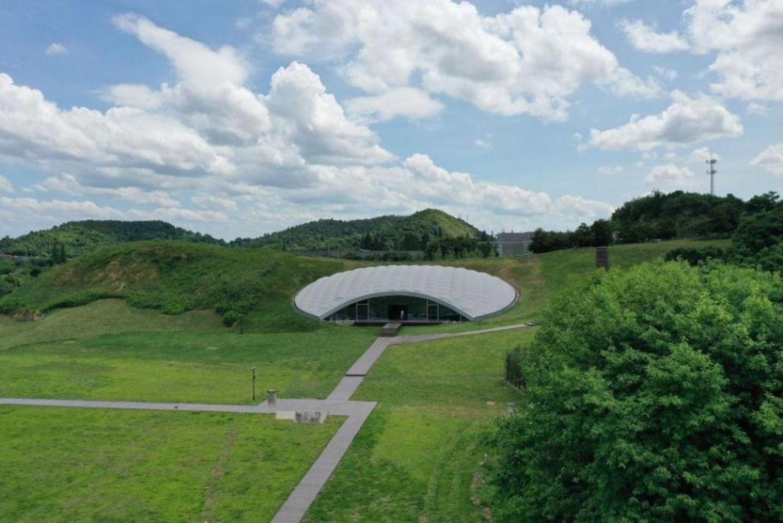 2022年7月6日拍摄的良渚古城遗址老虎岭遗址公园(无人机照片)。新华社记者 黄宗治 摄