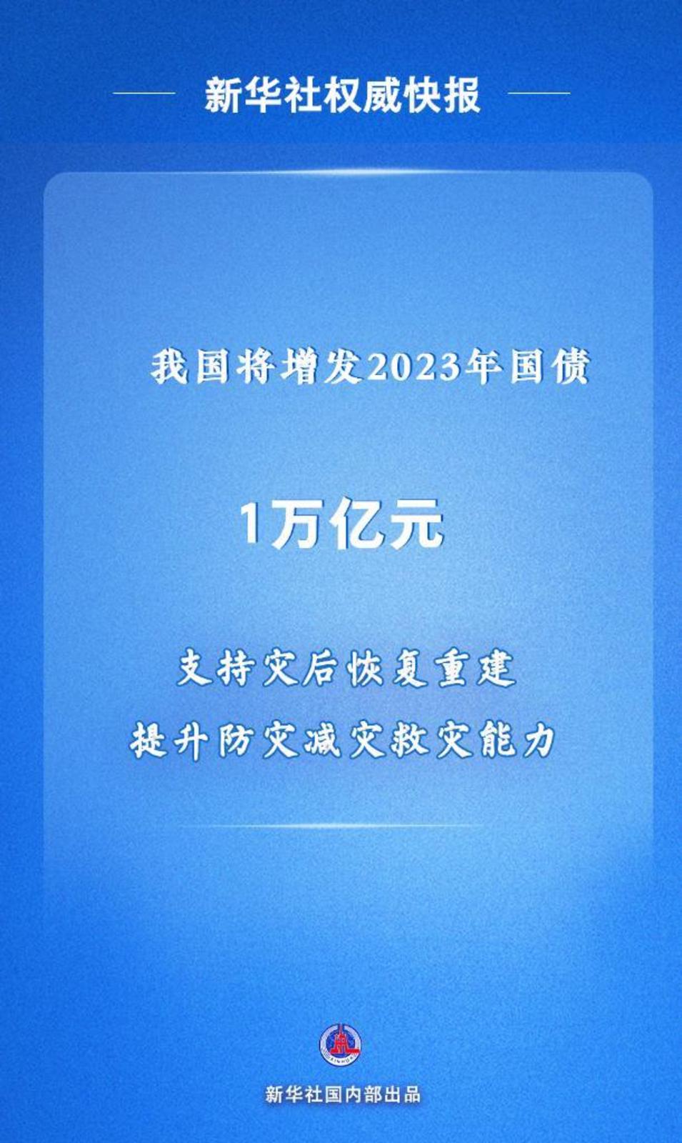 “增发2023年国债,是党中央、国务院作出的重大决策部署,是践行以人民为中心发展思想的重要举措。”财政部有关负责人表示,以强有力的资金保障有关工作落实,集中力量支持灾后恢复重建和弥补防灾减灾救灾短板,整体提升我国抵御自然灾害的能力。