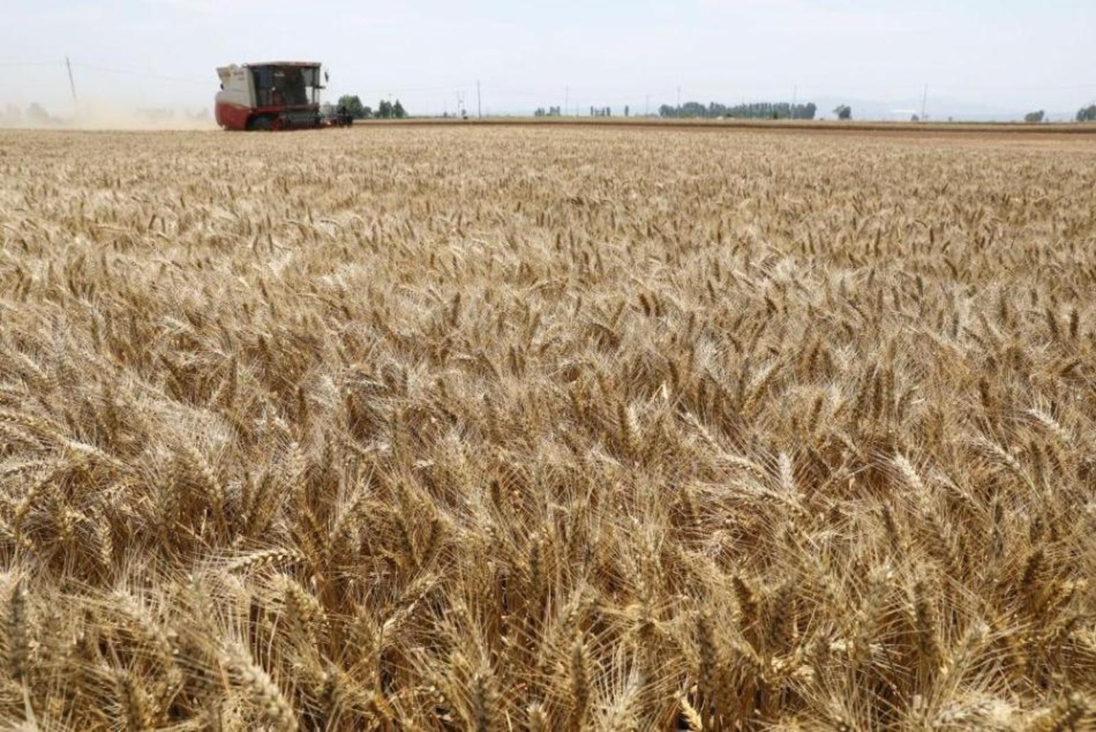 河南省焦作市温县黄河街道张王庄村村民驾驶收割机在田间收获小麦(2023年6月6日摄)。新华社发(徐宏星 摄)