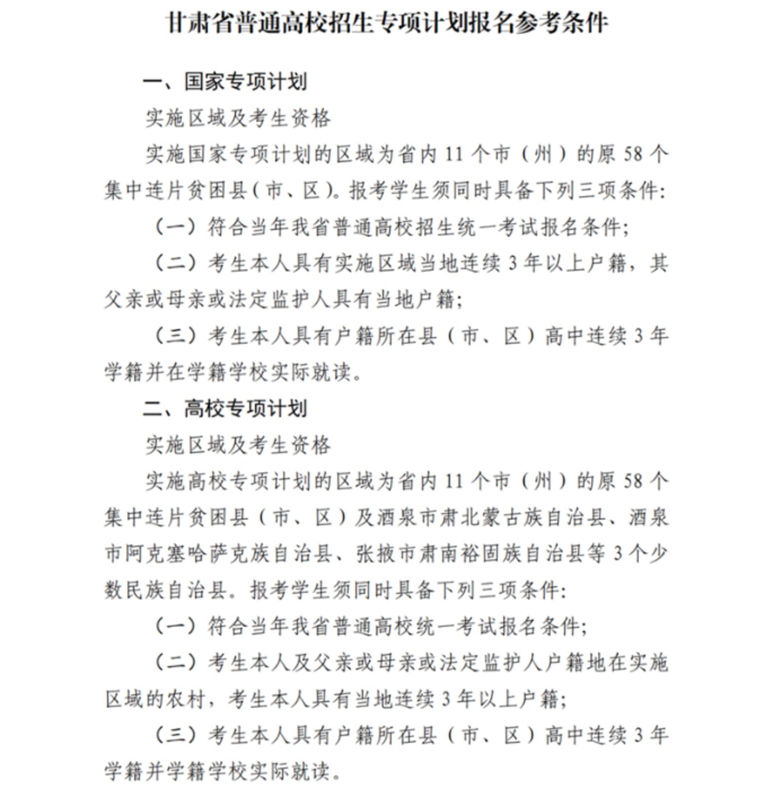 专项计划报名参考条件。