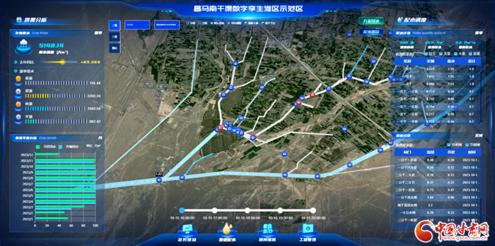 “两名职工就可以调度灌溉管理七万亩的地。”省疏勒河中心昌马灌区管理处南干渠灌溉管理所所长任晓文说,昌马南干渠片区10万灌溉区作为疏勒河数字孪生灌区的示范区,已于2023年8月建成500亩核心区,通过闸门自动控制系统和田间自动灌溉系统,农田微型气象站、土壤墒情仪、视频监控等监测感知设施,结合灌区百亩实测灌溉定额,实现作物的全要素精准灌溉。