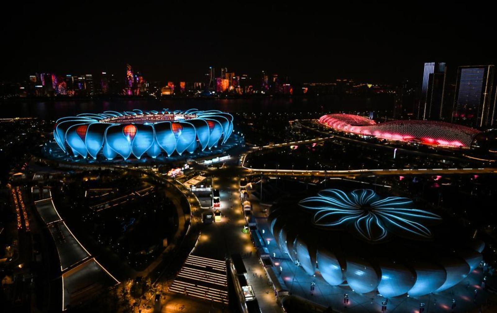 这是10月8日拍摄的杭州奥体中心体育场馆群。新华社记者 夏一方 摄