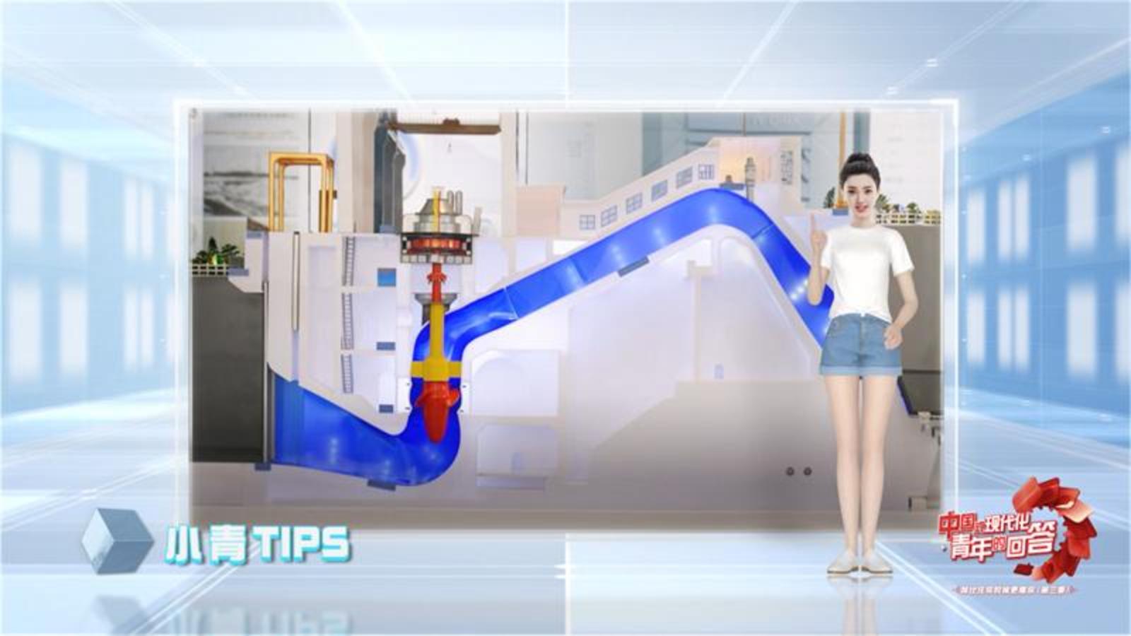 江都水利枢纽是国家南水北调东线工程的源头,正是从这里开始,一江清水向北输送。在这里,徐士坤和AI数字人小青走进江都水利枢纽第四抽水站,解开了能让“江水逆流”背后的秘密,还带大家沉浸式体验了江都水利枢纽的“智慧大脑”——江都水利枢纽集中调度控制中心。小青解释,在这里可以通过数字化映射、智能化模拟,让各个机组、泵站的运行状态一一还原。工作人员只需要轻点鼠标,就可以直观看到机组运行的所有数据,助力江水“爬楼”更加高效灵活。