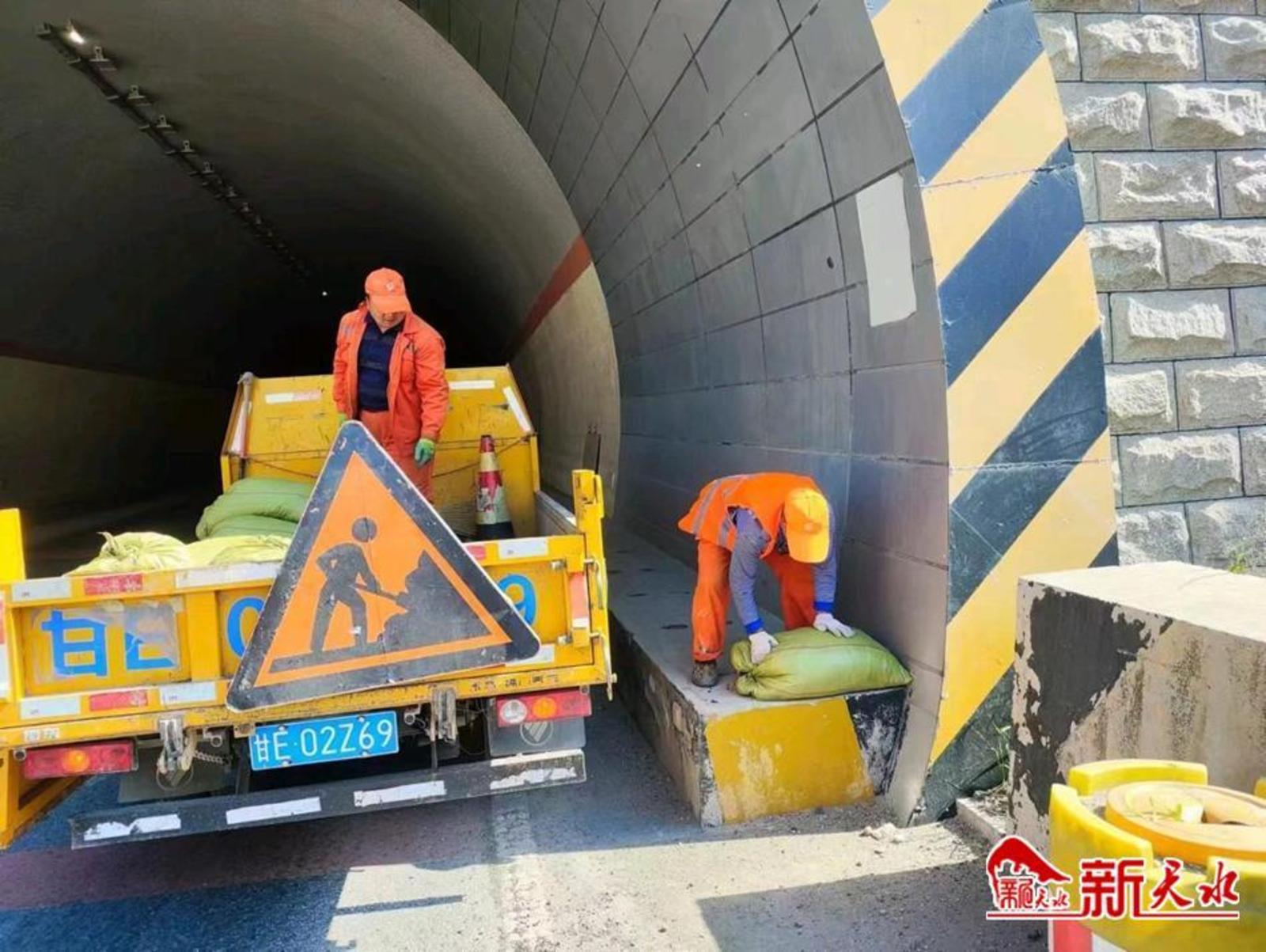 甘谷公路段全面清点现有防滑材料物资,及时补充融雪剂、防滑砂、冷补料等应急物资,并在公路急弯陡坡、长大下坡、桥面、隧道洞口等重点路段规范布设防滑料,切实保证物资投放到位。设备材料部则加班加点对通勤车、自卸车、装载机、融雪剂撒布车等机械设备进行全面检修保养,补充完善防滑链等设备,确保各机具以良好状态投入使用。