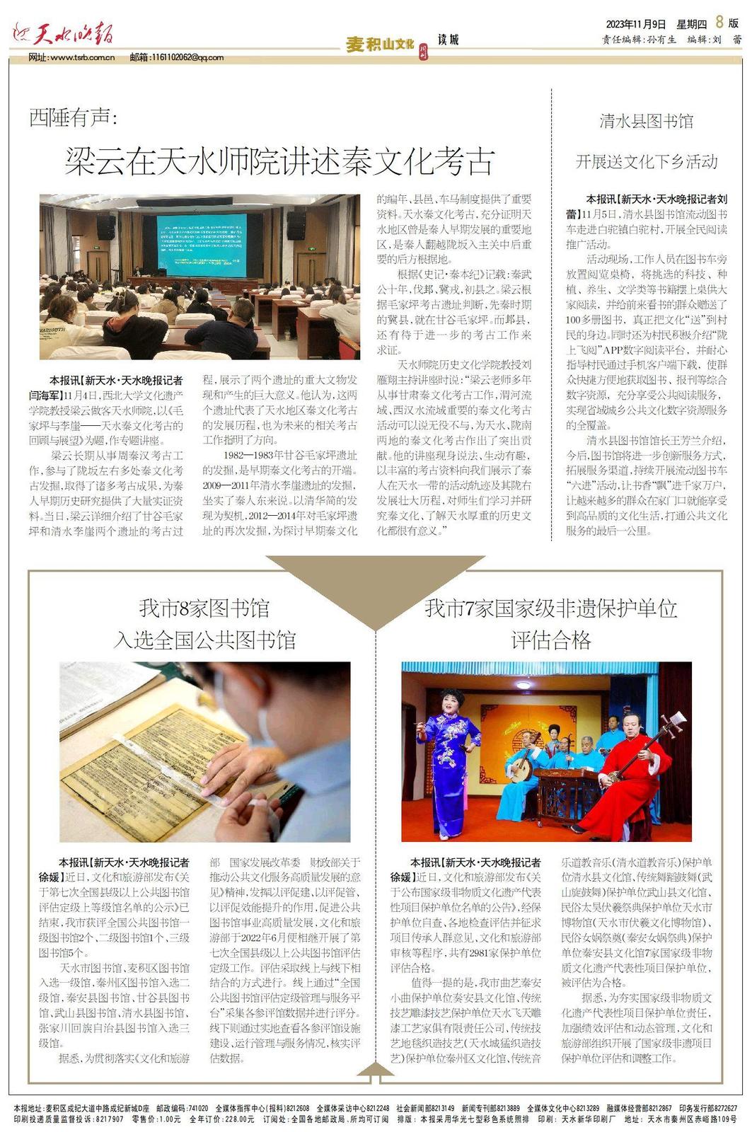 天水师院历史文化学院教授刘雁翔主持讲座时说:“梁云老师多年从事甘肃秦文化考古工作,渭河流域、西汉水流域重要的秦文化考古活动可以说无役不与,为天水、陇南两地的秦文化考古作出了突出贡献。他的讲座现身说法、生动有趣,以丰富的考古资料向我们展示了秦人在天水一带的活动轨迹及其陇右发展壮大历程,对师生们学习并研究秦文化、了解天水厚重的历史文化都很有意义。”