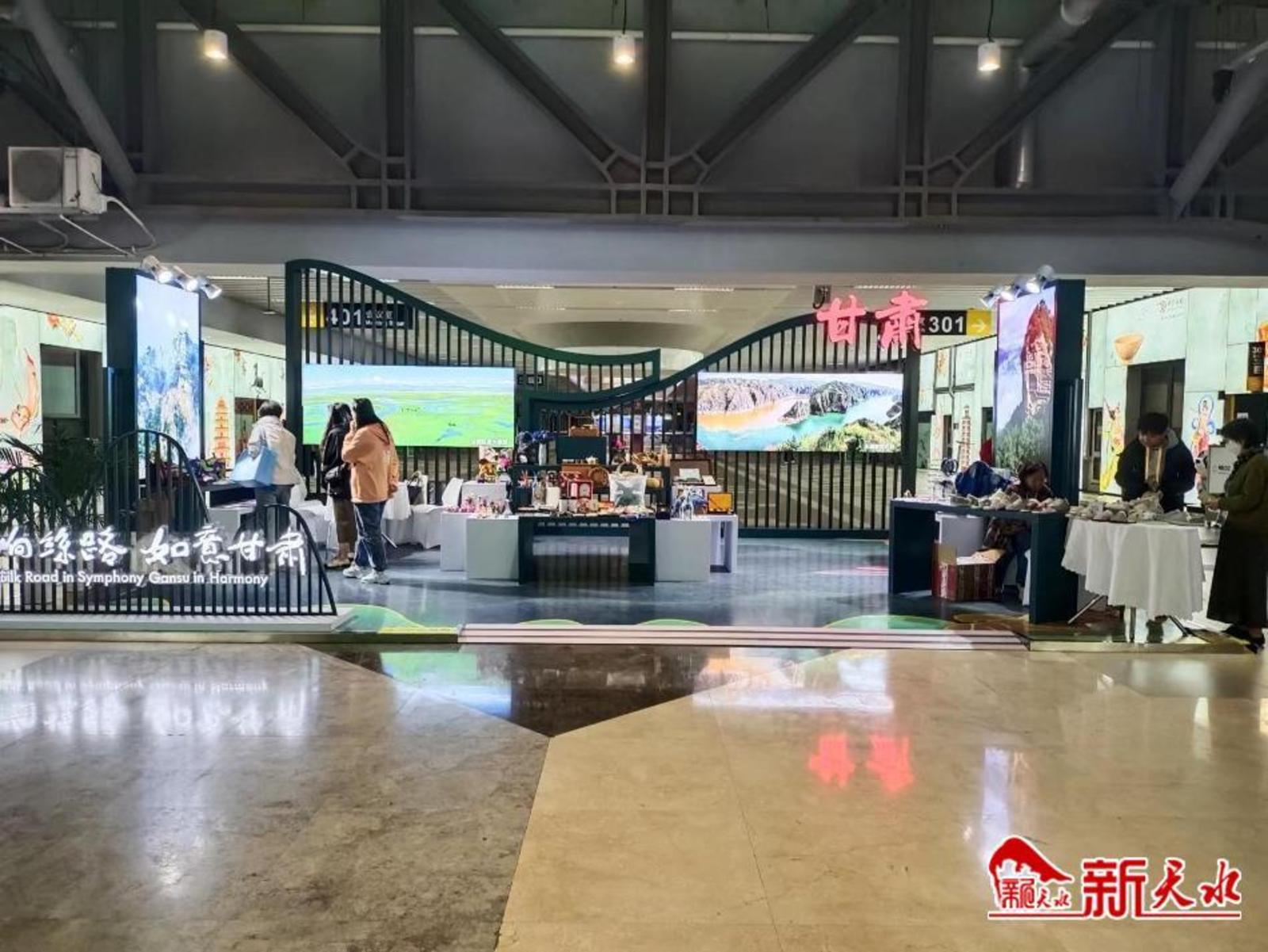 同时,我省还搭建了人文交流展区甘肃展区,电子大屏循环播放兰州黄河铁桥、天水麦积山、平凉崆峒山、甘南扎尕那、张掖七彩丹霞、嘉峪关关城、陇南官鹅沟等甘肃热门景区图片,通过文字、图片、视频和实物(展品)相结合的方式,全方位、立体式展示甘肃对外开放取得的成就和甘肃厚重的文化底蕴及丰富的旅游资源。我市“甘谷麻鞋”等文旅产品精彩亮相。