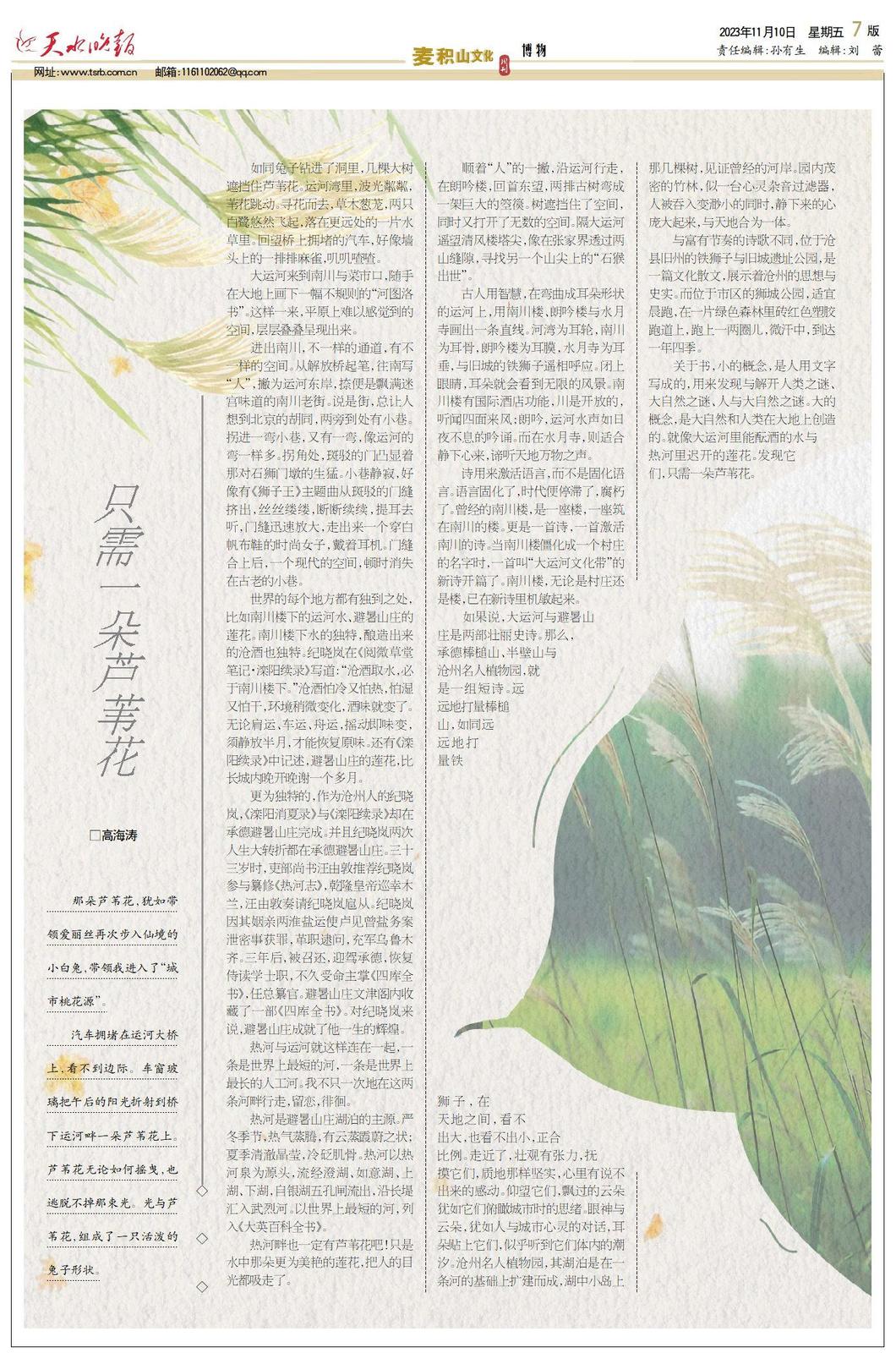 诗用来激活语言,而不是固化语言。语言固化了,时代便停滞了,腐朽了。曾经的南川楼,是一座楼,一座筑在南川的楼。更是一首诗,一首激活南川的诗。当南川楼僵化成一个村庄的名字时,一首叫“大运河文化带”的新诗开篇了。南川楼,无论是村庄还是楼,已在新诗里机敏起来。