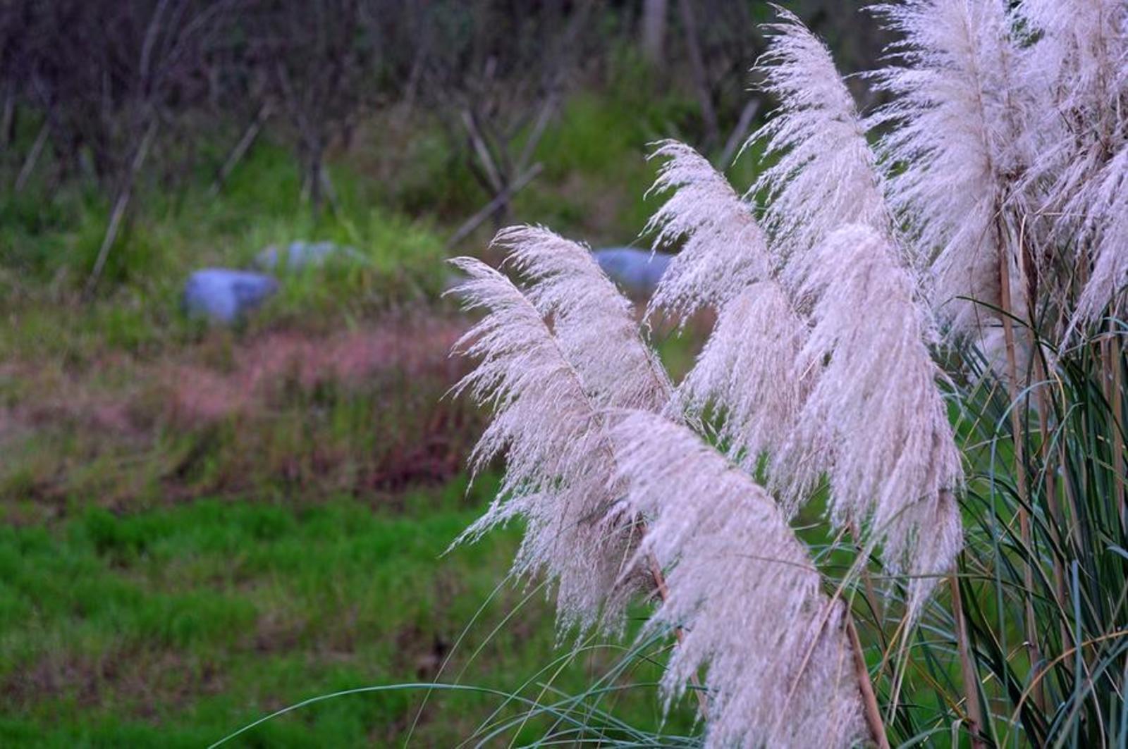 如同兔子钻进了洞里,几棵大树遮挡住芦苇花。运河湾里,波光粼粼,苇花跳动。寻花而去,草木葱茏,两只白鹭悠然飞起,落在更远处的一片水草里。回望桥上拥堵的汽车,好像墙头上的一排排麻雀,叽叽喳喳。